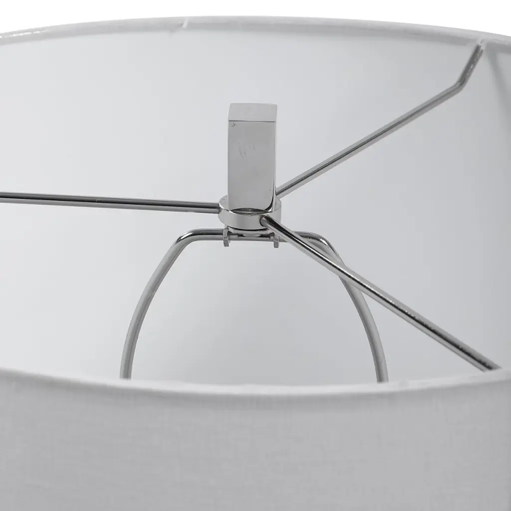 The Uttermost Cordata Modern Lodge Table Lamp blends natural aesthetics with upscale design, ideal for contemporary, lodge, or transitional interiors. Designed by Renee Wightman, this 28.75-inch tall lamp showcases a refined light gray oak look, crafted from durable MDF and accented by polished nickel-plated iron hardware and a clear crystal base. The organic texture contrasts beautifully with the reflective crystal and metallic details, offering a harmonious balance of rustic and modern. A white round hardback drum shade (16" diameter) completes the look, softening the silhouette while diffusing warm ambient light. Measuring 16" wide and 16" deep, and weighing 15.62 lbs, this piece adds both grounding and elevation to your decor, from bedroom nightstands to entry consoles. Key Features: Material: MDF body with crystal, iron accents, and fabric shade Color: Light gray oak wood tone with polished nickel and clear crystal elements Finish: Wood-look texture with reflective metal and crystal highlights Dimensions: 28.75" H × 16" W × 16" D Style Match: Ideal for modern lodge, transitional, and upscale rustic interiors
