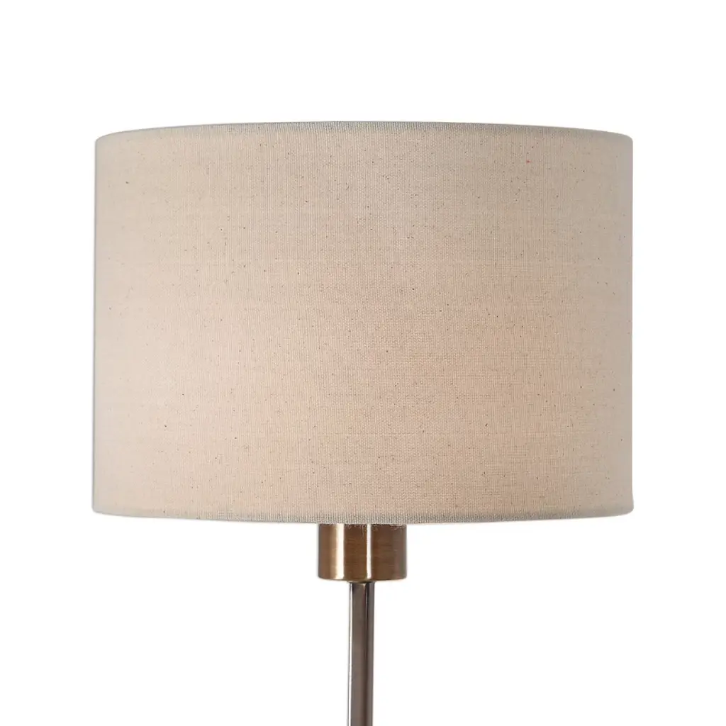 The Uttermost Danyon Brass Table Lamp brings understated elegance to any contemporary space with its clean lines and versatile design. Featuring a sleek iron base finished in plated antique brass, this lamp rests atop a thick, gleaming crystal block and a sturdy cast iron foot, creating a harmonious balance of materials. Standing 33 inches tall with a compact 10-inch square footprint, it’s perfectly suited for buffets, consoles, or side tables. The round beige linen hardback drum shade with subtle light slubbing complements the warm brass finish and softens the overall look, casting gentle, ambient light. Designed with a simple on-off switch and requiring a single 100W bulb, this lamp marries style and function effortlessly. Key Features: Materials: Iron base with plated antique brass finish, thick crystal block, cast iron foot, and fabric shade Finish: Antique brass plating on iron base; clear crystal block adds sophisticated contrast Dimensions: 33” H x 10” W x 10” D Shade: Round hardback drum in beige linen with light slubbing; 7” H, 10” diameter (top & bottom) Bulb Requirements: 1 x 100W max Type A bulb; on-off switch for simple operation Designer: Created by Matthew Williams for the Danyon Collection Manufactured in: Vietnam; engineered for secure shipping and easy setup