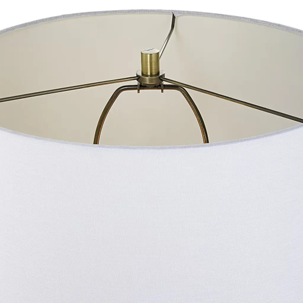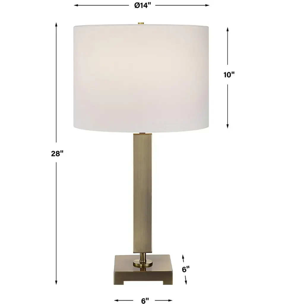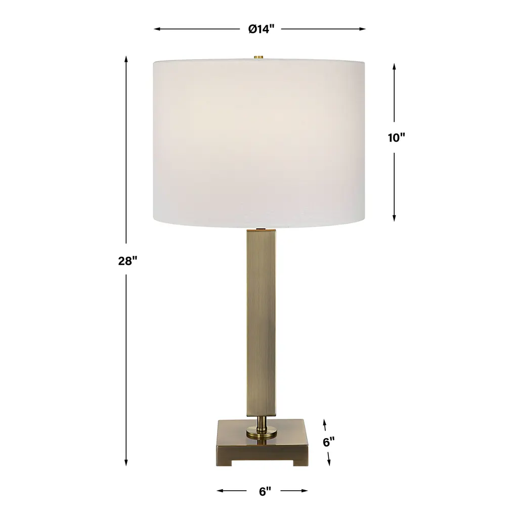 Uttermost Duomo Brass Table Lamp – Antique Brass Metal Base With White Linen Shade, 14"x14"x27"