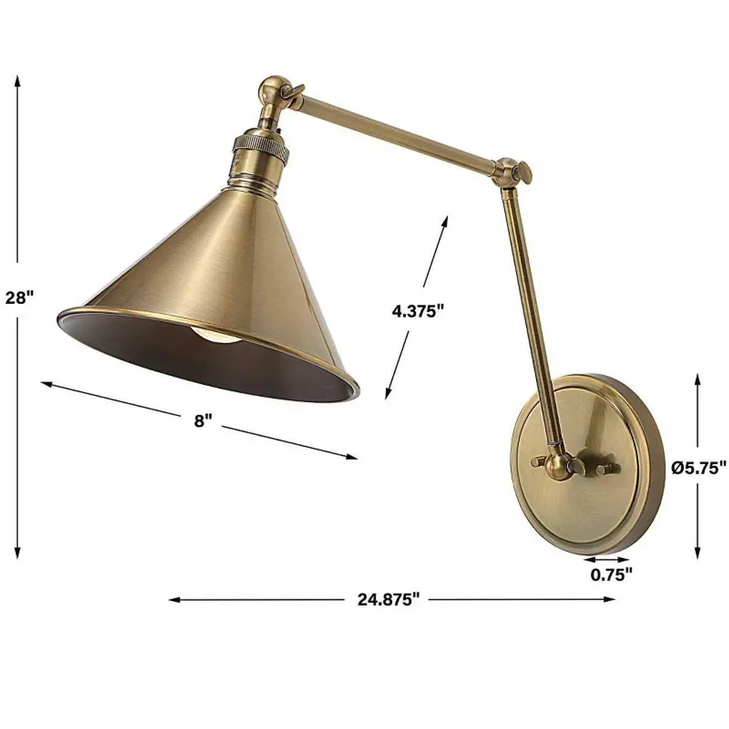 Uttermost Exeter 1-light Adjustable Wall Sconce – 28"h X 8"w Aged Brass Metal Cone Shade Classic Design