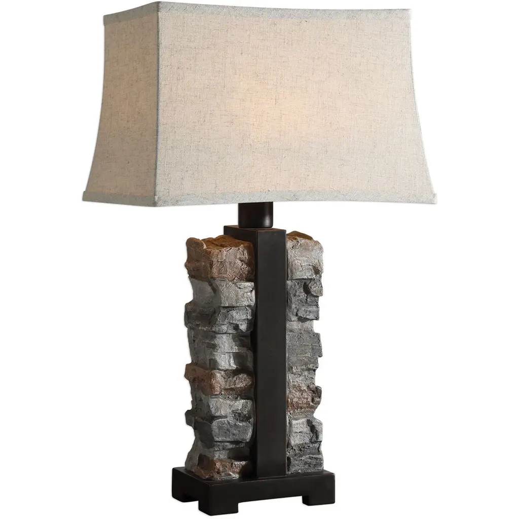 Bob and Belle Cooper founded The Uttermost Company in 1975, and it is still 100% owned by the Cooper family. The Uttermost mission is simple and timeless: to make great home accessories at reasonable prices. Inspired by award-winning designers, custom finishes, innovative product engineering and advanced packaging reinforcement, Uttermost continues to deliver on this mission. For over 30 years, Uttermost has enjoyed steady growth with over 200 employees working in its Rocky Mount, Virginia factories totaling 600,000 square feet. It also has a factory in China and a state-of-the-art West Coast distribution center for increased capacity and faster shipping to West Coast retailers and customers. Uttermost is proud to support many of the world''s most prestigious home-furnishing customers with its products and services. Uttermost believes its success is largely based on its commitment to three key principles: proving superior customer service, maximizing product value through great design and sharp pricing, and treating its employees, sales representatives, and designers as partners in business.Uttermost''s Lamps Combine Premium Quality Materials With Unique High-style Design.With The Advanced Product Engineering And Packaging Reinforcement, Uttermost Maintains Some Of The Lowest Damage Rates In The Industry. Each Product Is Designed, Manufactured And Packaged With Shipping In Mind. This Indoor/outdoor Lamp Features A 3-dimensional Stacked Stone Design Formed Out Of Molded Concrete, Paired With Rustic Black Metal Details. The Rectangle Bell Shade Is A Beige Linen, Weather Resistant Fabric.