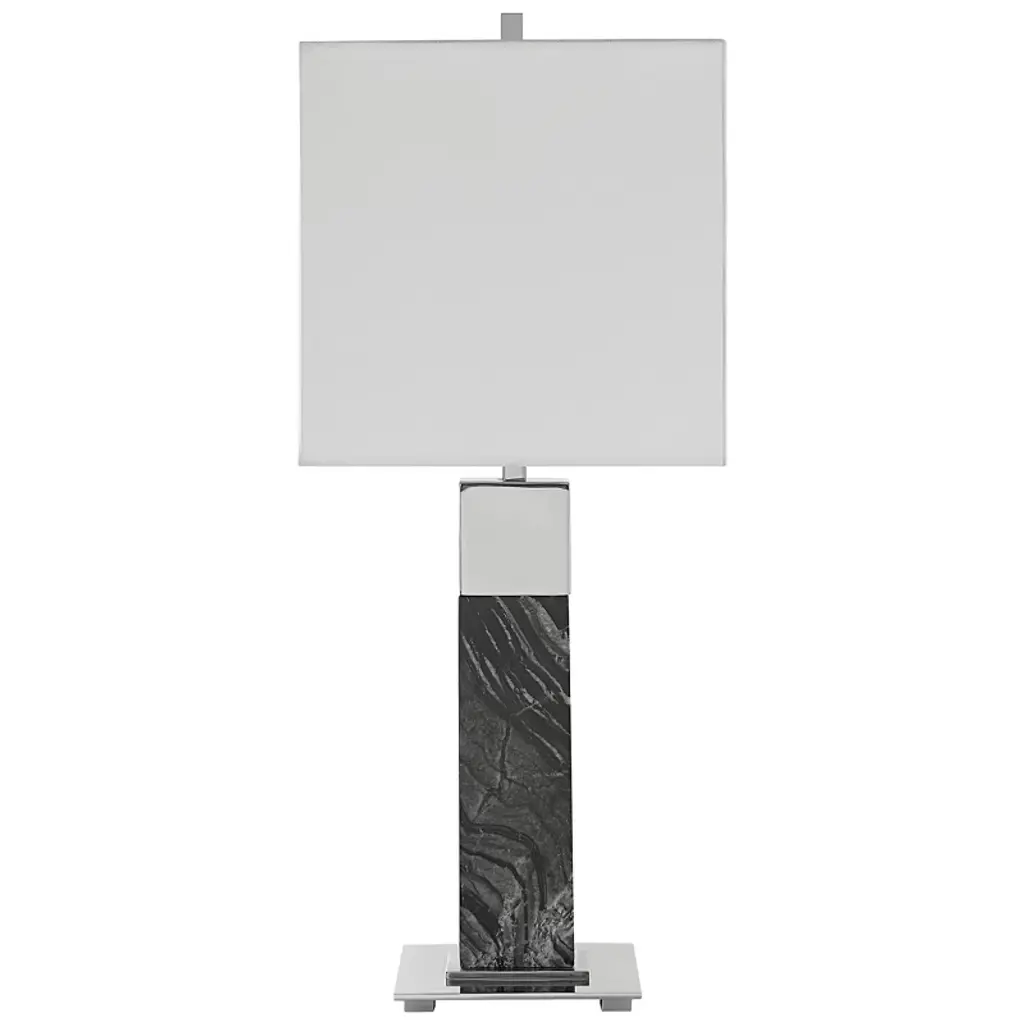 Uttermost Pilaster Table Lamp – 27"h Black Marble Column With Polished Nickel Accents & White Rectangular Shade