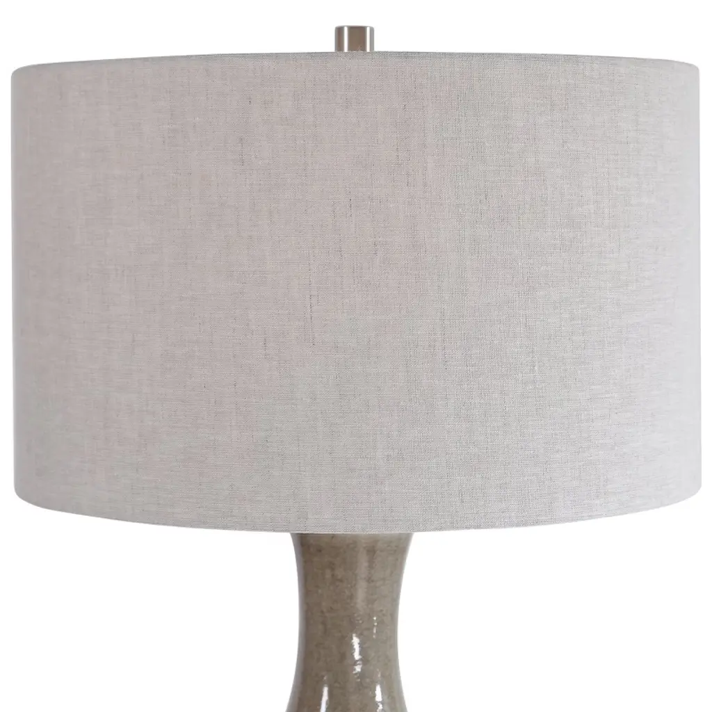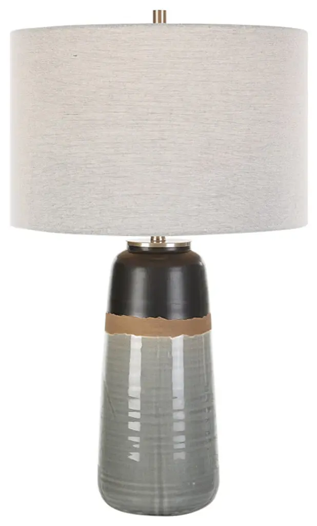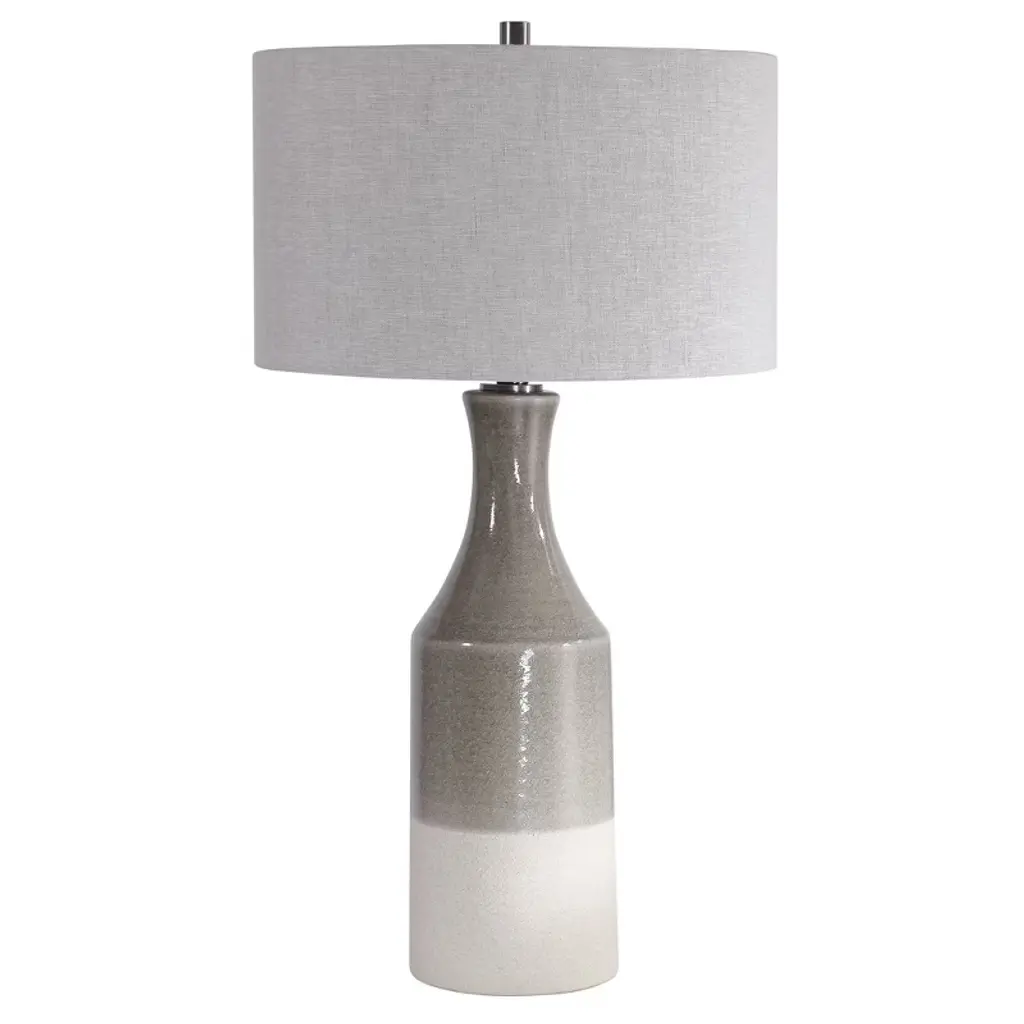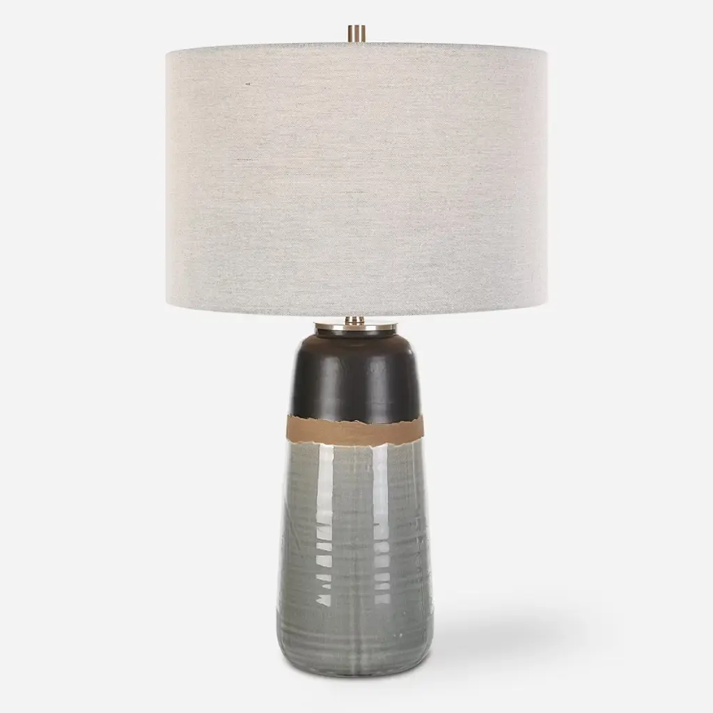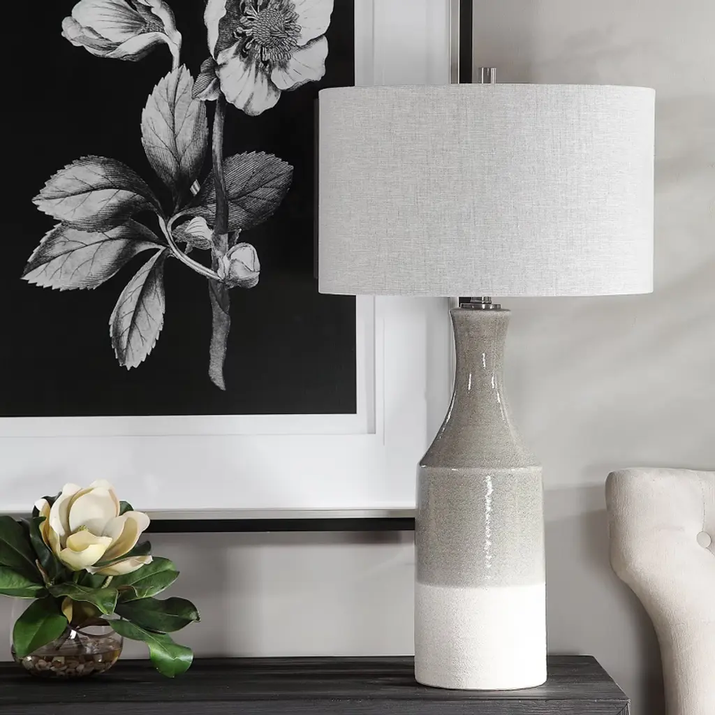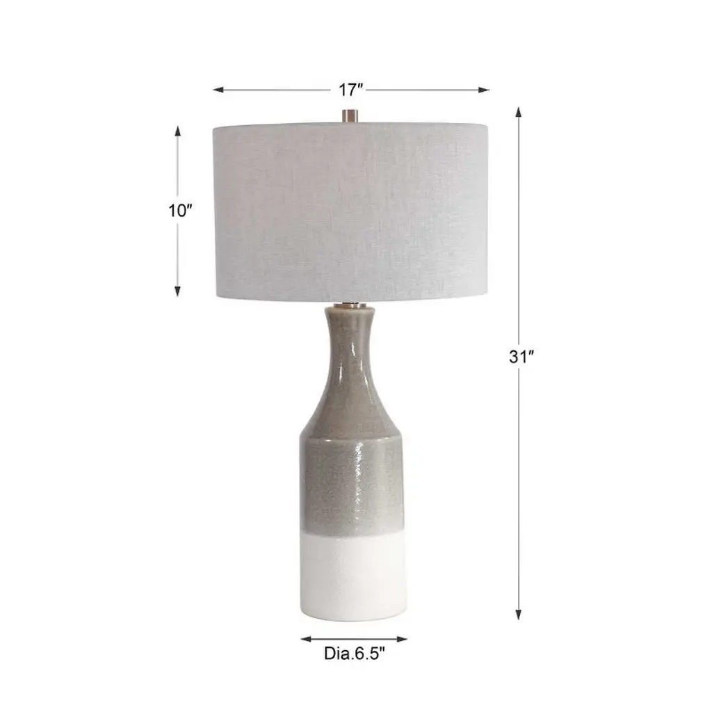 Uttermost Savin Ceramic Table Lamp – 31” Glossy Warm Gray And Textured Ivory Base With Gray Linen Shade