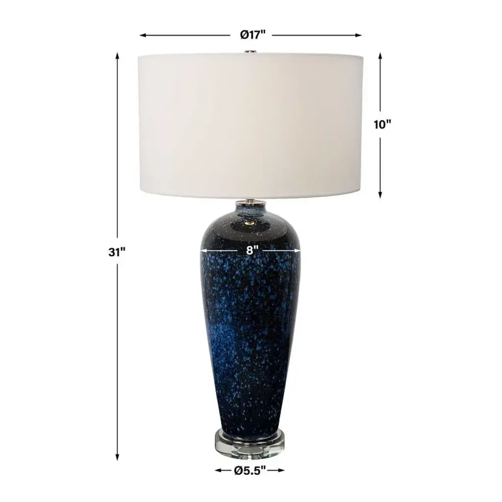 Uttermost Stargazer Table Lamp – Cobalt Navy Art Glass Base, Crystal Foot, 31” Tall, White Drum Shade