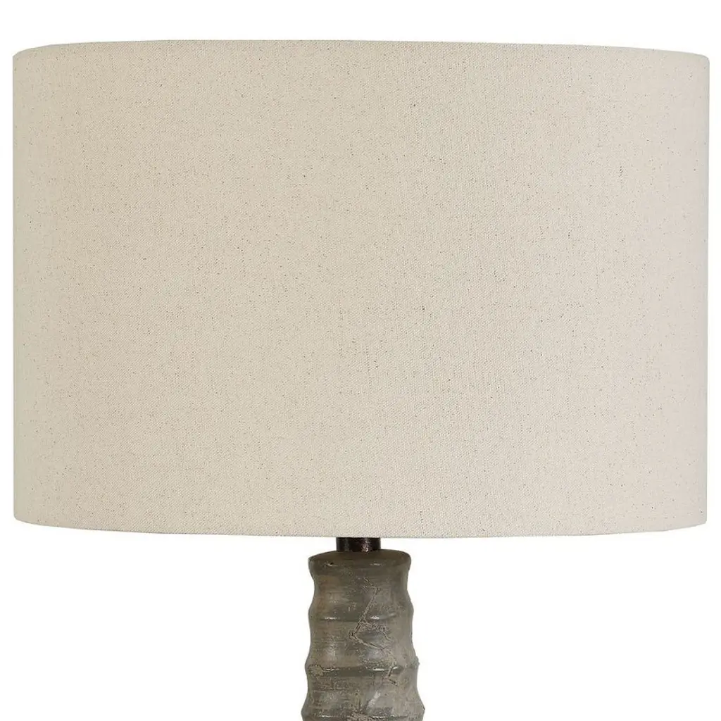 Uttermost Stratum Outdoor Table Lamp – Ribbed Concrete Base with Bronze Accents and Weather-Resistant Linen Shade, 27” High Rustic charm meets outdoor durability in the Uttermost Stratum Outdoor Table Lamp. Inspired by antique hand-turned pottery, this ribbed concrete base lamp is finished in a distressed gray tone with rich dark bronze accents, adding vintage appeal to patios, balconies, or indoor spaces. Topped with a light beige weather-resistant linen shade, it delivers soft, ambient lighting with style. Measuring 27 inches tall with a 10-inch high by 15-inch diameter shade, it's a reliable and stylish lighting solution for any setting. Key Benefits: Indoor/Outdoor Use: Weather-resistant shade is perfect for patios or porches Timeless Aesthetic: Ribbed design evokes vintage hand-turned pottery Warm Lighting: Linen shade casts soft, even illumination Durable Materials: Concrete and steel construction ensure long-lasting use Effortless Maintenance: Simple to clean and quick to set up