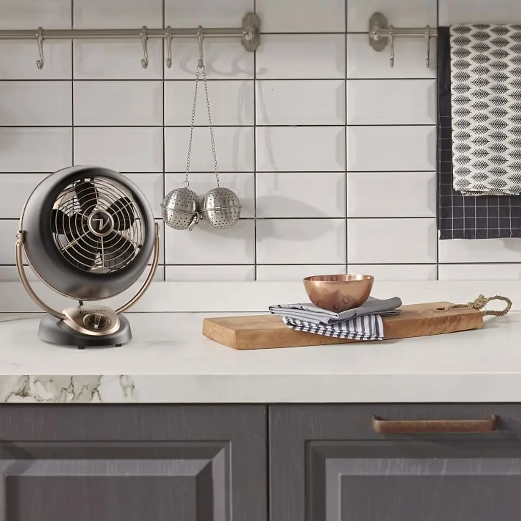 Metal frame and base. Plastic blades. 5 speed settings. Moves air up to 70'. UL listed. 5 year warranty. Imported.