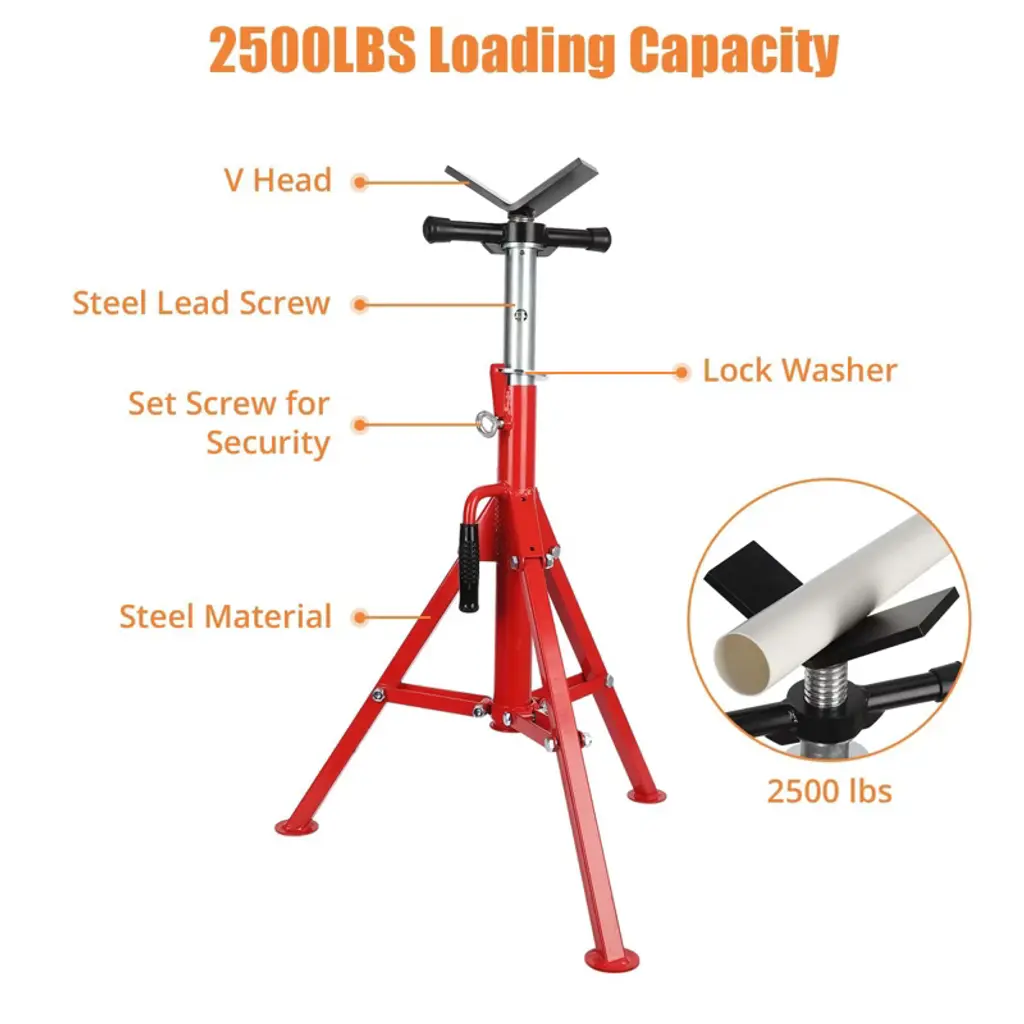 V Head Pipe Jack Stand, 28''-52'' Adjustable Folding Pipe Stand, 2500 Lb Load Capacity, For Automotive, Welding, And Construction Projects