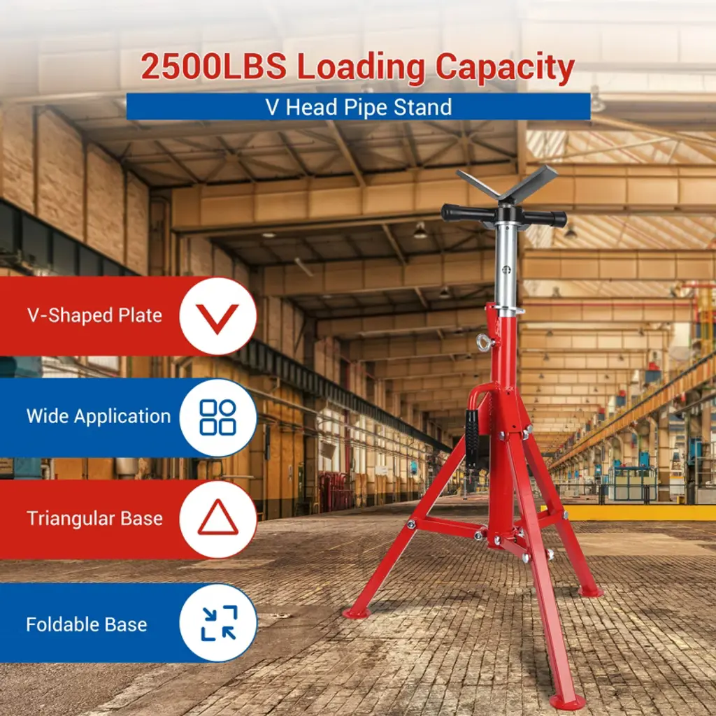 V Head Pipe Jack Stand, 28''-52'' Adjustable Folding Pipe Stand, 2500 Lb Load Capacity, Steel Jack Stands For Automotive, Welding