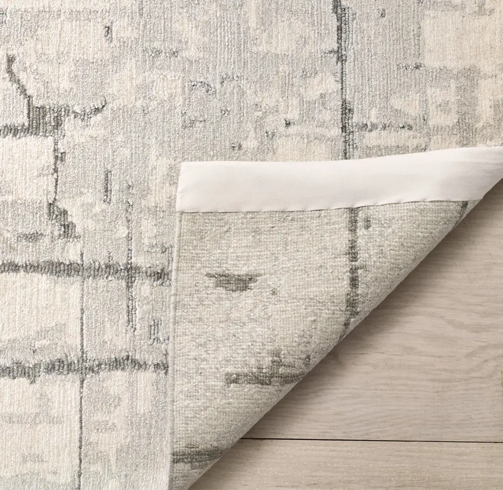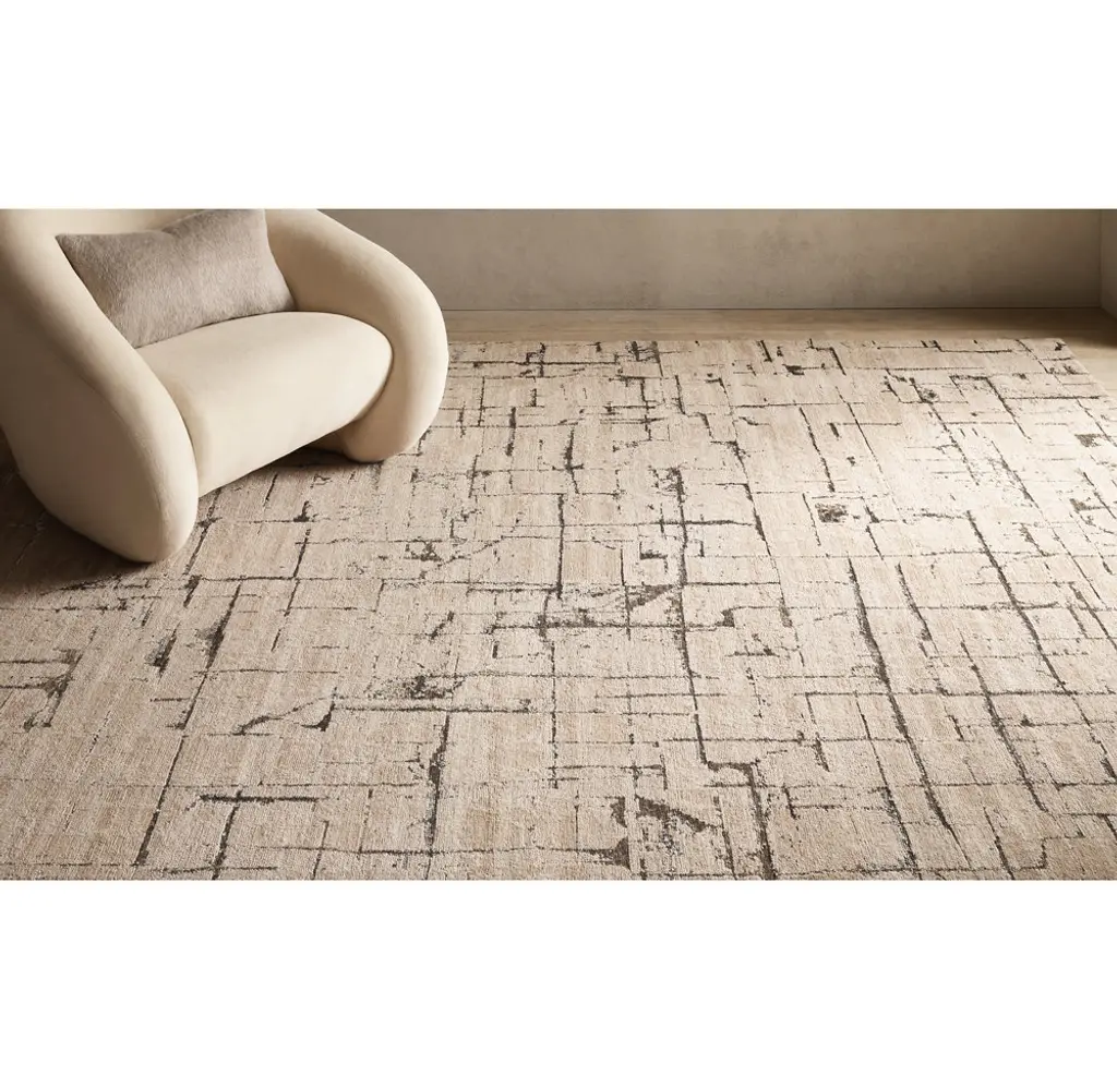 Evoking the prismatic beauty of glass, Vaarini's filigree lines are enhanced by an abrash patina and the juxtaposition of luminous silk with matte wool. The pile is sheared to a low finish with exceptional softness and subtle texture produced by the artisan's hand.