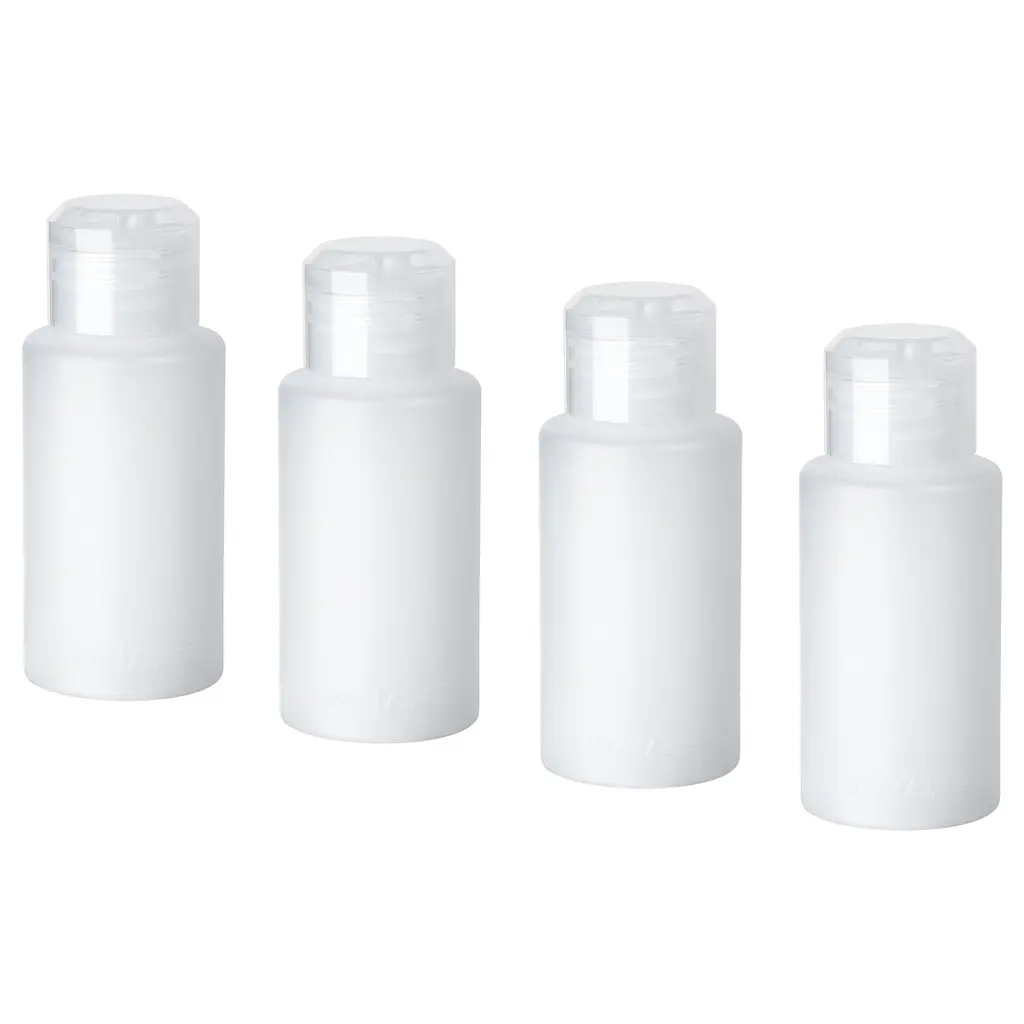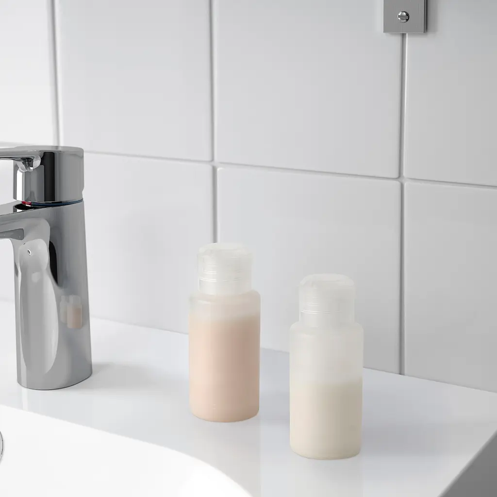VAGN Bottle 3 oz. You can easily see how much is left in the bottle since it is transparent. Perfect to carry in your hand luggage when you fly since each bottle holds exactly 100 ml. Dishwasher-safe.
