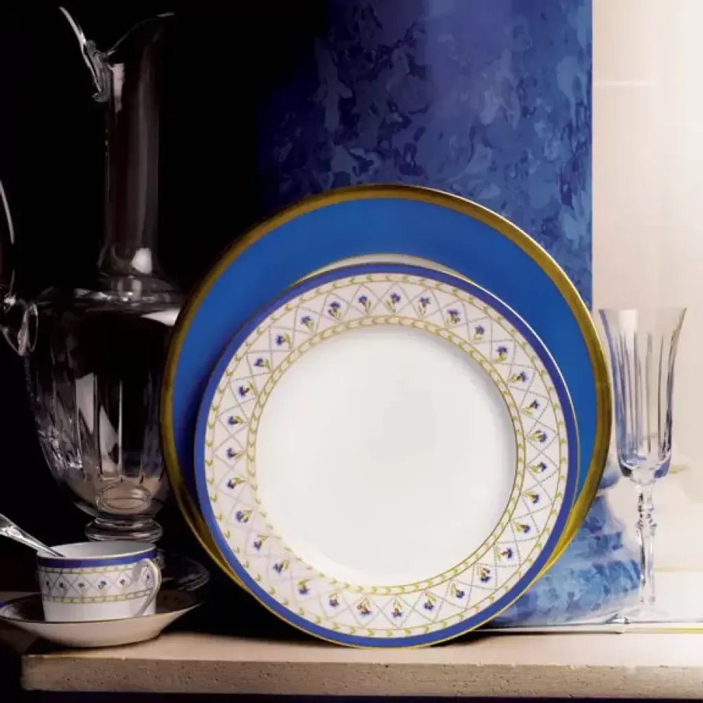 France's Loire valley is well known for it's beautiful flora. Lavender flowers are especially abundant. Haviland captures the essence of lavender flowers with the Val de Loire dinnerware. Tiny blue flowers adorn each piece, along with delicate designs and a gold rim. Five piece place setting includes dinner plate, salad/dessert plate, bread & butter plate, teacup and saucer. Haviland Porcelain was founded by David Haviland, an American who moved from New York to France after he was brought a broken tea cup to match and recognized the quality and color of the old piece of porcelain. Filled with curiosity, he went to France to find the factory where the cup had been made, but the samples he was sent were not up to his standards. So in 1841, he moved to Limoges to set up his own factory. Traditional French dinnerware was usually produced in Limoges and sent to Paris for decoration. Haviland insisted on setting up a studio within his factory to have more control over the designs. Renowned artists, including Cocteau, Dali, and Kandinsky have played a role in the company's designs. Today, Haviland is one of the premier names in French porcelain dinnerware, sought by collectors all over the world. Clients have included the White House, Empress Eugenie, General de Gaulle, Jacques Chirac, the Emperor of Japan, and the Royal Court of Morocco.