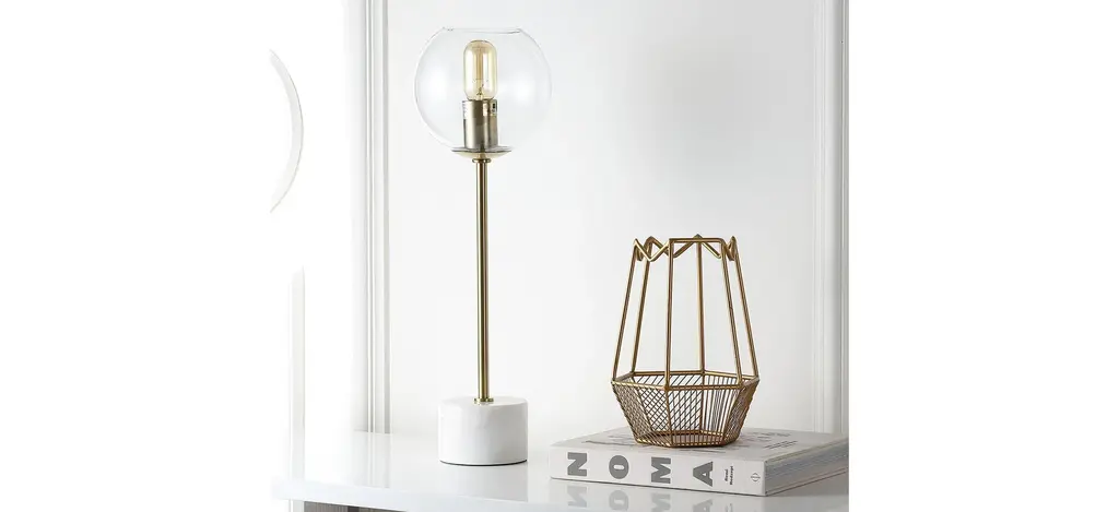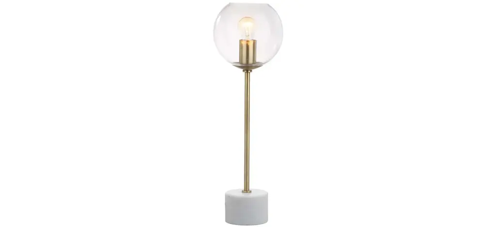 A blend of luxe materials and modern style, this contemporary Valda Table Lamp refreshes any living room. Its deluxe metal design features a brass and gold finish that shimmers in the glow of its vintage style globe. Designers love its white marble plinth.