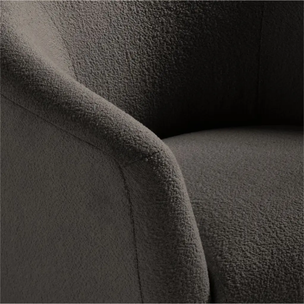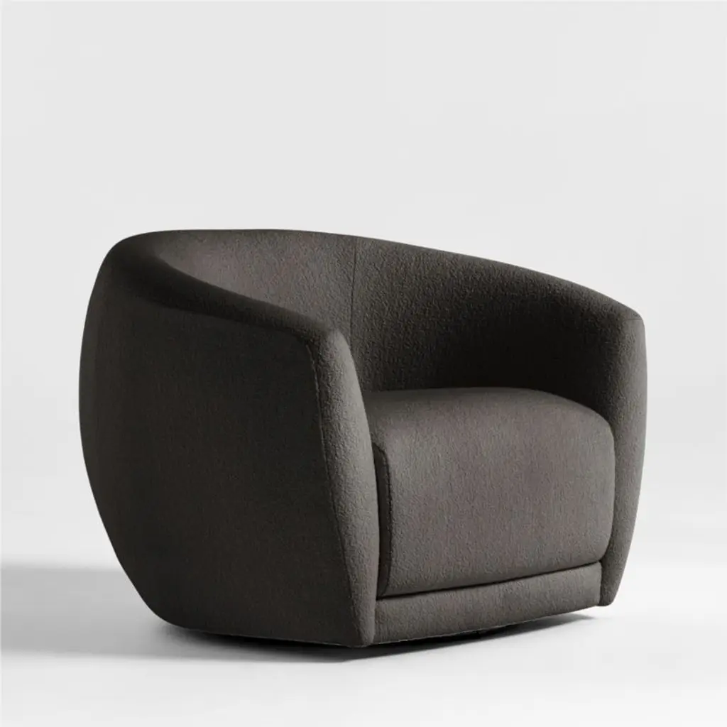 Cozy up to Valen, our contemporary, super-comfortable take on a classic silhouette of modern design. You'll love its sculptural egg-shaped profile, arms that curve a hugging embrace and a swivel that goes a full 360. A slim deck makes room for an extra-plush seat. Neatly tailored in charcoal black boucle weave for a luxe feel that is still durable for everyday use, this exclusive swivel chair looks stunning on its own or in pairs.By choosing FSC®-certified furniture, you are supporting responsible management of the world's forests.