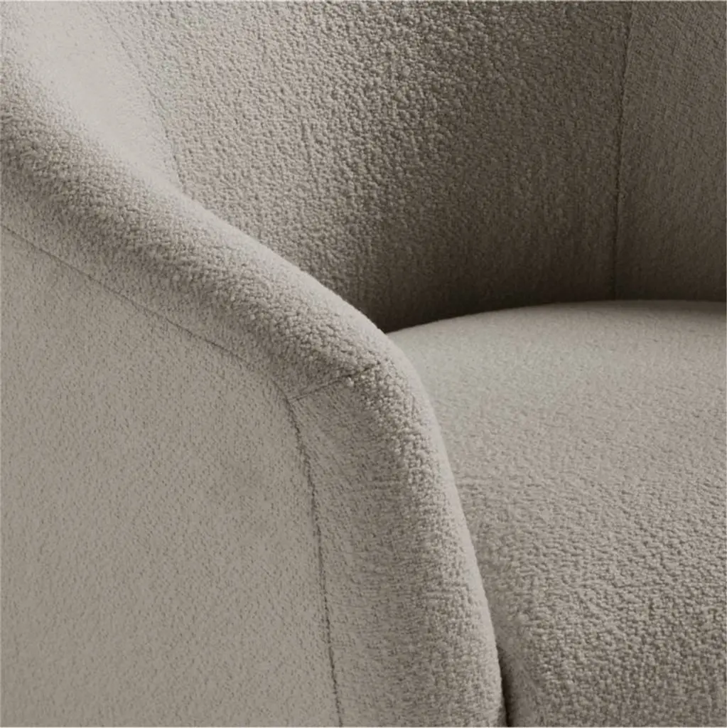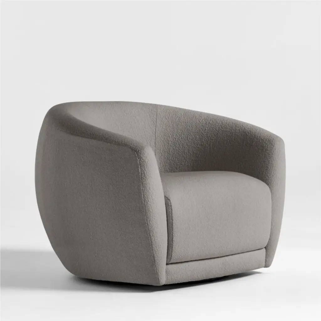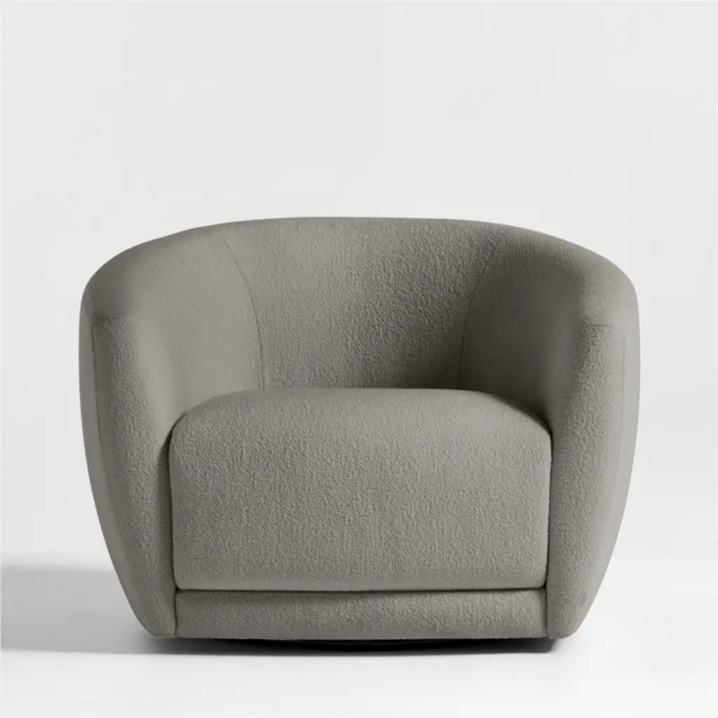 Cozy up to Valen, our contemporary, super-comfortable take on a classic silhouette of modern design. You'll love its sculptural egg-shaped profile, arms that curve a hugging embrace and a swivel that goes a full 360. A slim deck makes room for an extra-plush seat. Neatly tailored in slate grey boucle weave for a luxe feel that is still durable for everyday use, this exclusive swivel chair looks stunning on its own or in pairs.By choosing FSC®-certified furniture, you are supporting responsible management of the world's forests.
