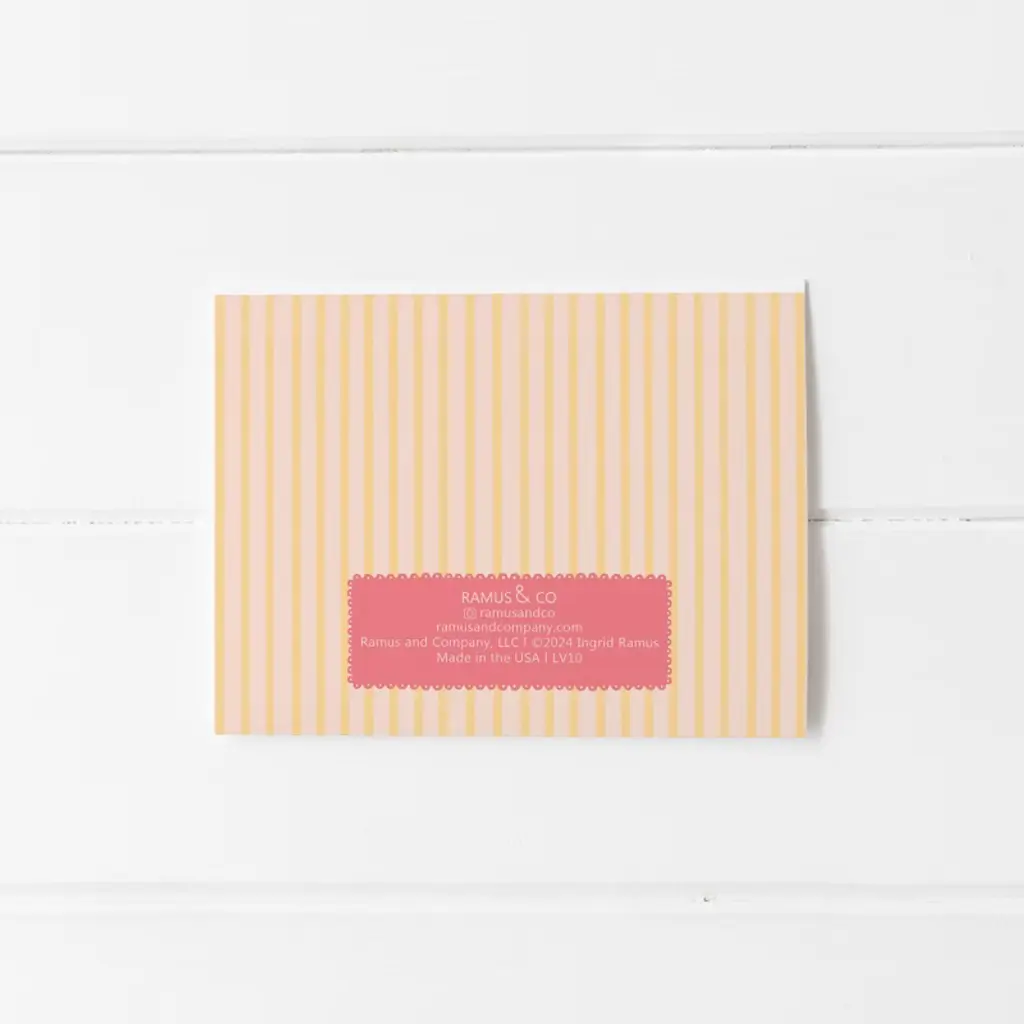 This 3-pack of greeting cards is elegantly illustrated by artist Ingrid Ramus, founder and owner of the Ramus & Co brand. The cards are blank inside. All greeting cards are made in the USA on heavyweight uncoated and locally-manufactured card stock. Each card is individually wrapped in TUV Austria certified-compostable PLA sleeves. Each card is accompanied by a hand-embossed envelope made with heavyweight 95lb paper and a peel-and-stick flap - no licking envelopes here! All Ramus & Co. greeting cards are printed on FSC and SFI certified paper sourced from a regional mill that harnesses 66% of its energy from on-site sustainable sources, such as emission-free hydroelectricity and biomass co-generation from wood waste. Additionally, our greeting cards are thoughtfully packaged in bags made from certified compostable PLA material. Husband-and-wife team Calvin and Ingrid Ramus founded Ramus & Company in 2019, in New England, USA. Ingrid, the creative designer behind the brand, originates from Mexico, where she cultivated her skills in fashion and textile design. Drawing from her unique and inquisitive perspective on preppy style, Ingrid prolifically designs whimsical yet classic stationery and lifestyle items.