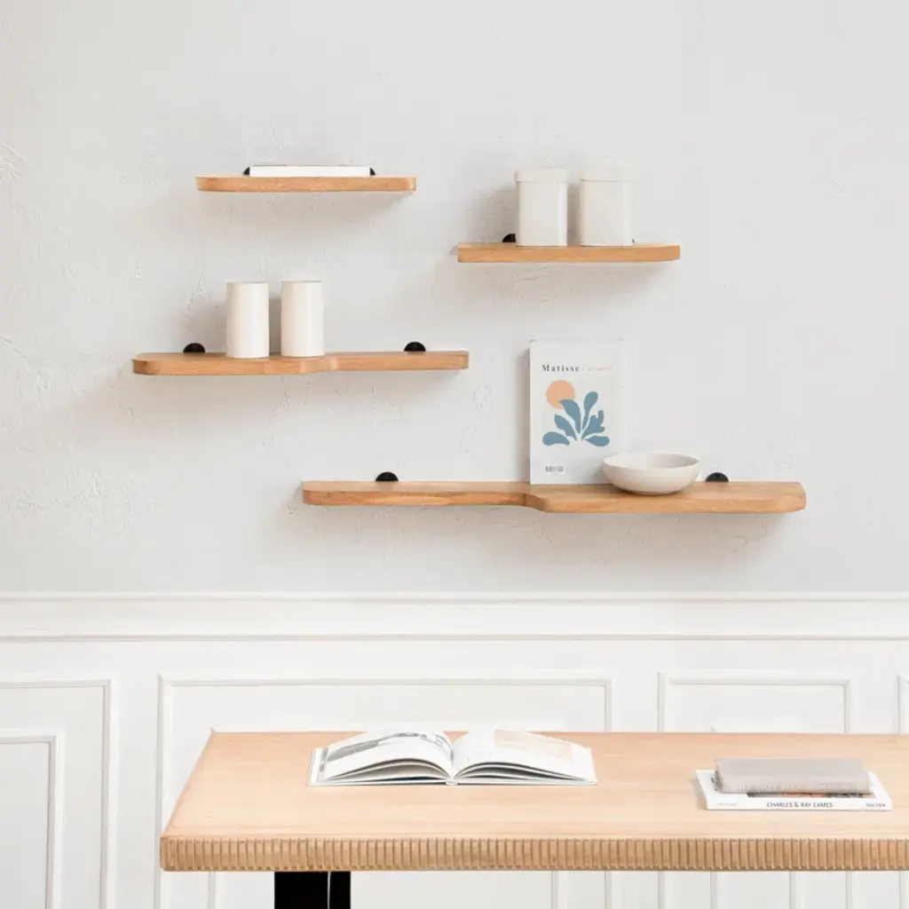Shelf love. Storage woes? Meet this set of four. Solid wood all over, it resembles a puzzle that, once solved, makes for a stunning display! It’s perfect for an instant storage solution that doesn’t take up floor space. Get creative!