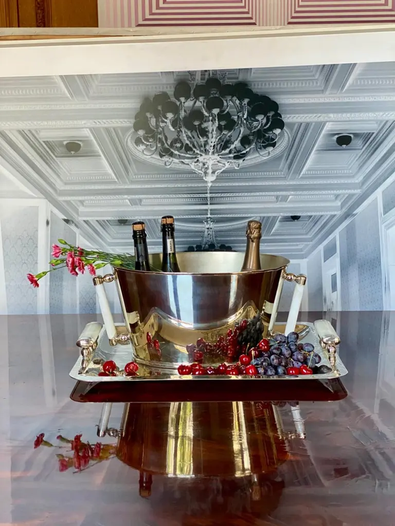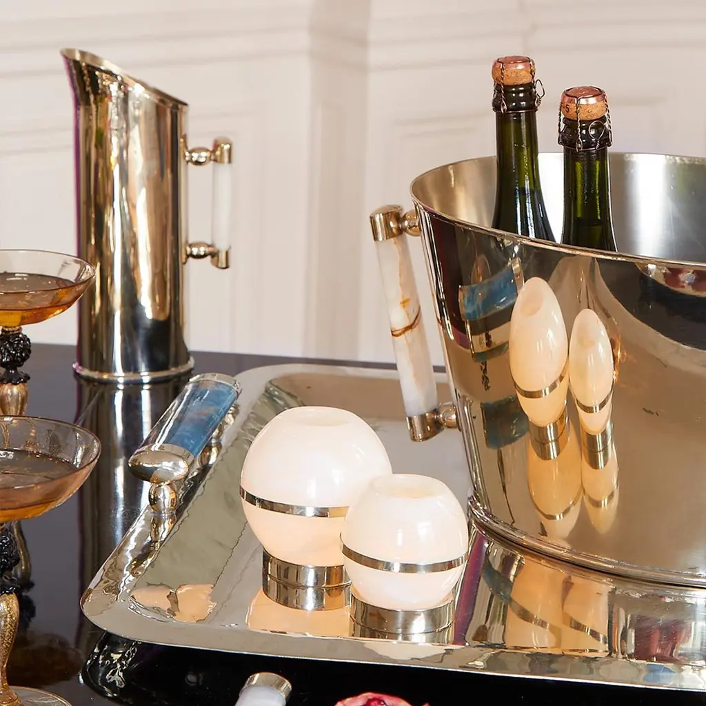 Valle Medium Silver Alpaca & Cream Onyx Stone Bar Champagne Bucket