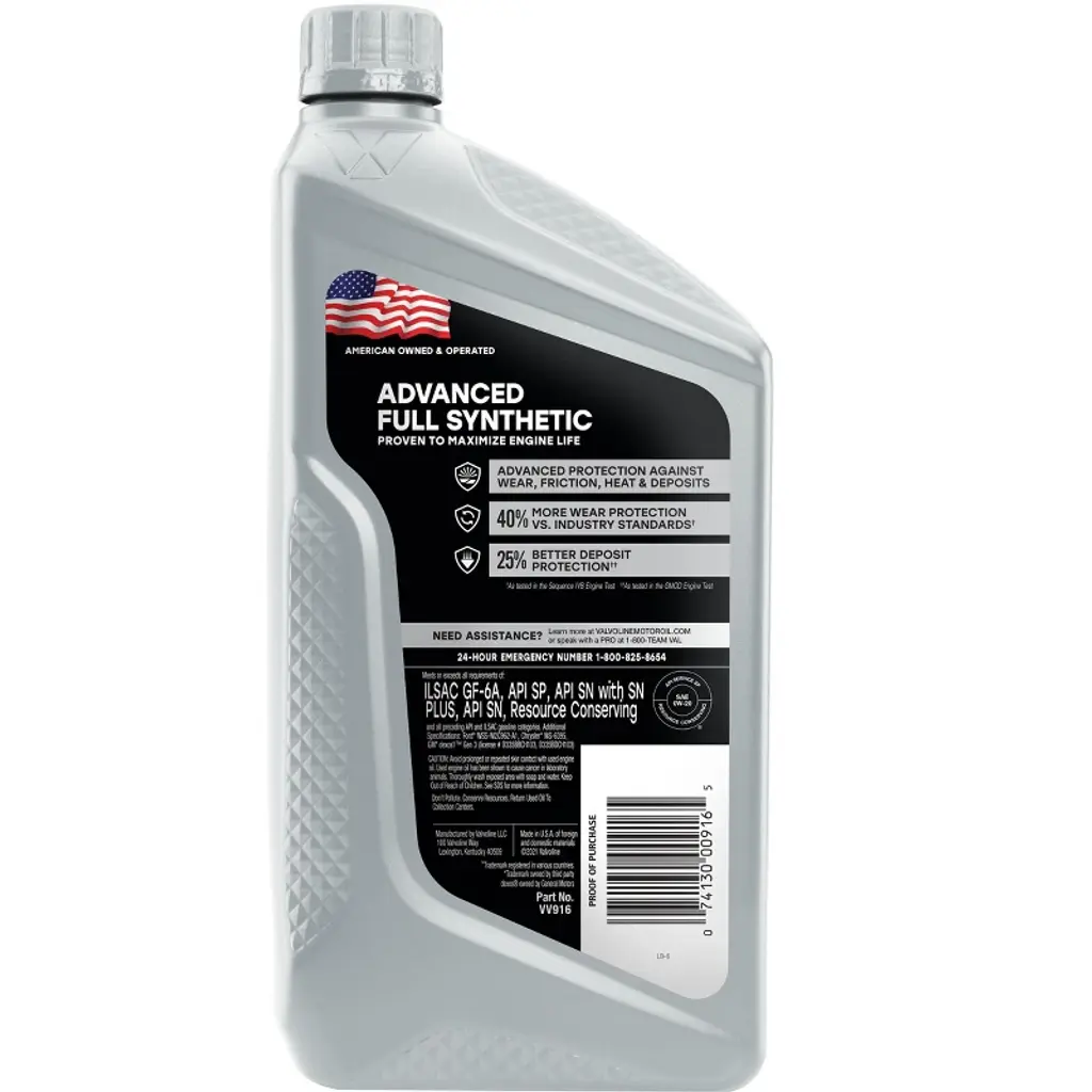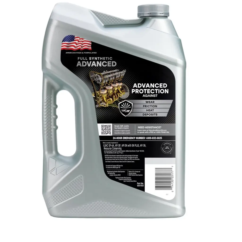 Anything a conventional motor oil can do Valvoline Advanced Full Synthetic can do better. Designed with the highest quality base oils and additives, it delivers 25% better deposit protection and 40% better protection against wear than industry standards. With less wear, you can expect stronger performance, optimal fuel efficiency, and a longer-lasting engine. Driving conditions like short trips or stop-and-go traffic are hard on a vehicle and the car’s engine oil, causing extreme heat and temperature fluctuations inside your motor that can lead to harmful sludge and extra friction. Valvoline Advanced Full Synthetic Motor Oil includes additional boosters to minimize the effects of heat. And for enhanced cold start protection, it flows easily at low temperatures. Step up to one of our best motor oils for superior performance in all types of weather and conditions. GM dexos 1 Gen3 certified and approved in SAE 0W-20 and 5W-30, Valvoline Advanced Full Synthetic Motor Oil provides 24X stronger protection against engine-killing contaminants than the leading full synthetic, keeping your motor running smooth whether it’s a Ford, Toyota, Dodge, Jeep or Honda. Valvoline Advanced Full Synthetic, from the Original Motor Oil brand trusted for more than 150 years.