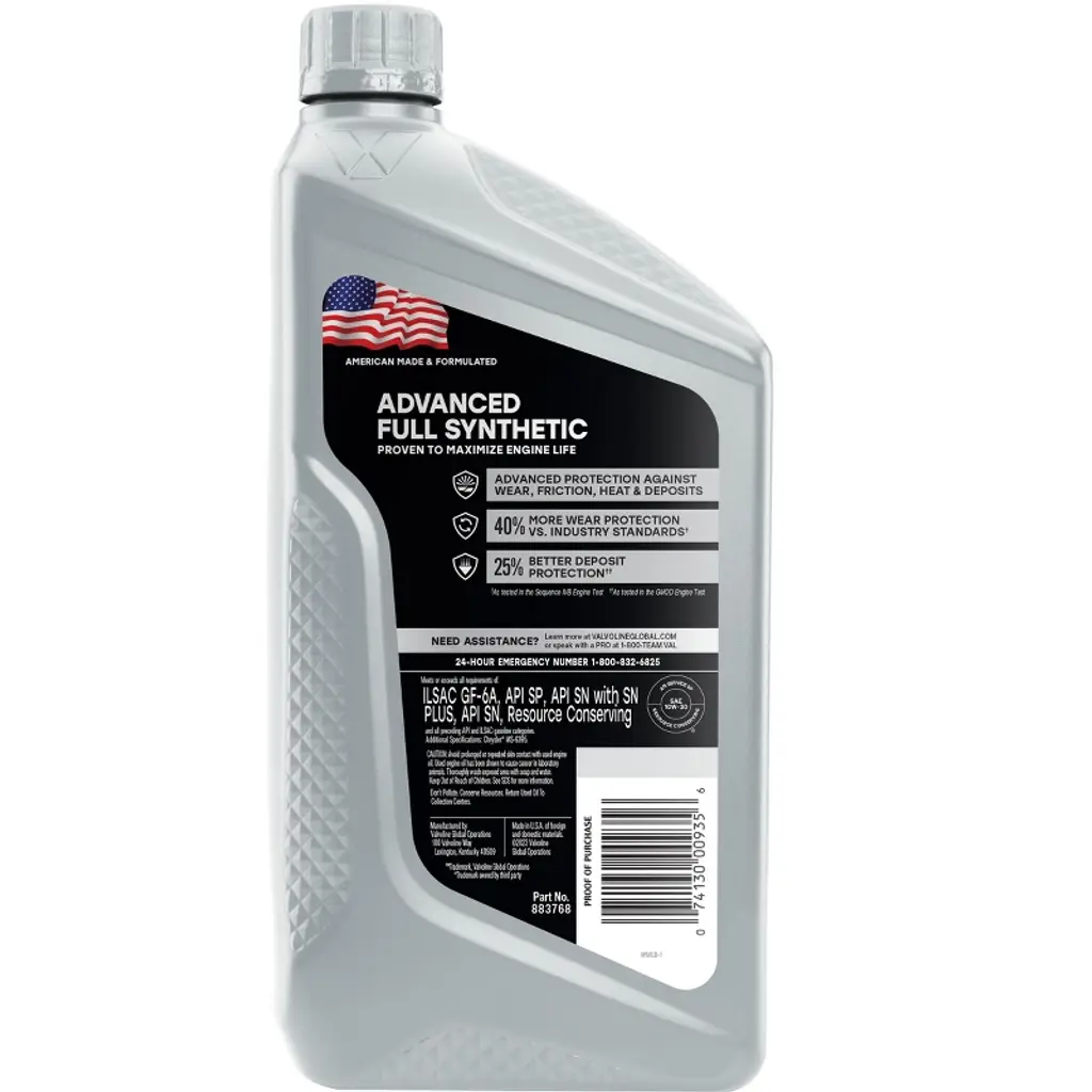 Anything a conventional motor oil can do Valvoline Advanced Full Synthetic can do better. Designed with the highest quality base oils and additives, it delivers 25% better deposit protection and 40% better protection against wear than industry standards. With less wear, you can expect stronger performance, optimal fuel efficiency, and a longer-lasting engine. Driving conditions like short trips or stop-and-go traffic are hard on a vehicle and the car’s engine oil, causing extreme heat and temperature fluctuations inside your motor that can lead to harmful sludge and extra friction. Valvoline Advanced Full Synthetic Motor Oil includes additional boosters to minimize the effects of heat. And for enhanced cold start protection, it flows easily at low temperatures. Step up to one of our best motor oils for superior performance in all types of weather and conditions. Valvoline Advanced Full Synthetic Motor Oil provides 24X stronger protection against engine-killing contaminants than the leading full synthetic, keeping your motor running smooth whether it’s a Ford, Toyota, Dodge, Jeep or Honda. Valvoline Advanced Full Synthetic, from the Original Motor Oil brand trusted for more than 150 years.
