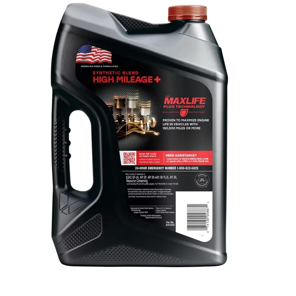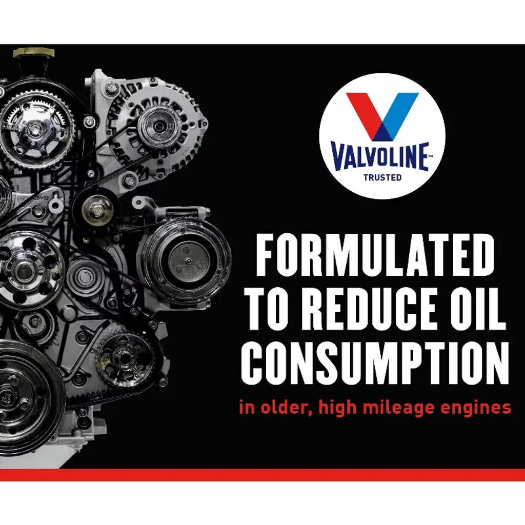 The average age of cars on the road is 12.5 years, and many have well over 100,000 miles. Valvoline High Mileage 150K with MaxLife Plus Technology can help keep those high-mileage motors running stronger for longer. It’s the first motor oil specially formulated to address the needs of engines with more than 150,000 miles. Aging engines have unique challenges like oil leaks, oil consumption due to blow-by, corrosion, a loss in power, significant wear, and excessive heat. Valvoline High Mileage 150K with MaxLife Plus Technology combines a blend of synthetic and premium conventional basestocks with seal conditioning agents to reduce oil consumption and stop smaller leaks before they become catastrophic. Designed with anti-wear Moly Additive Protection technology, it rapidly forms a film on critical metal engine surfaces to minimize friction, reduce heat, boost performance, and maximize efficiency. Our proprietary mixture of powerful cleaning agents and superior antioxidants help keep older engines clean of deposits and sludge, ensuring a smooth-running motor in extreme weather. Why just give your vehicle an oil change when you can increase its longevity with our best motor oil for older cars, Valvoline High Mileage 150K with MaxLife Plus Technology, in SAE 10W-30, 5W-20 and 5W-30.