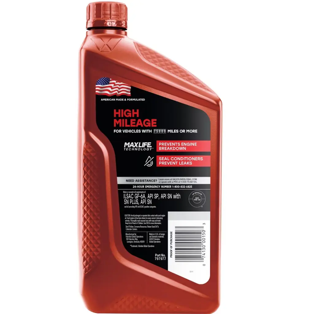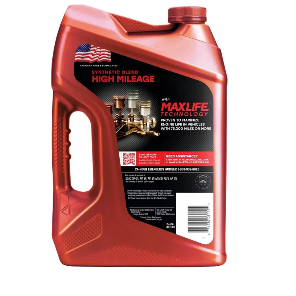 Maybe you’re spending extra money to top off oil between changes. Or maybe you’re noticing oil leaks in your driveway. Either way, it’s an obvious sign your vehicle needs a high mileage motor oil. If left untreated, the issues could eventually lead to engine breakdown. Other problems with aging engines may be less obvious but can still be just as harmful. After 75,000 miles, your vehicle deserves Valvoline High Mileage Motor Oil with premium seal conditioners seal conditioners to rejuvenate aging seals and prevent oil leaks. Our synthetic blend formula and superior-quality additives protect against engine deposits, wear, friction and extreme heat, the four leading causes of engine failure. Plus, added detergents reduce sludge, corrosion and deposits. Toyota, Ford, Chevy, Dodge, Honda, Hyundai – cars, SUVs, trucks – no matter the make or model, Valvoline High Mileage with MaxLife Technology helps curb contaminants to keep high-mileage engines from burning and consuming oil. Valvoline Synthetic Blend High Mileage with MaxLife Technology, America’s first motor oil to specifically address the needs of higher mileage vehicles.