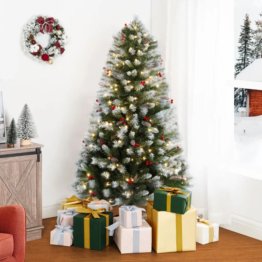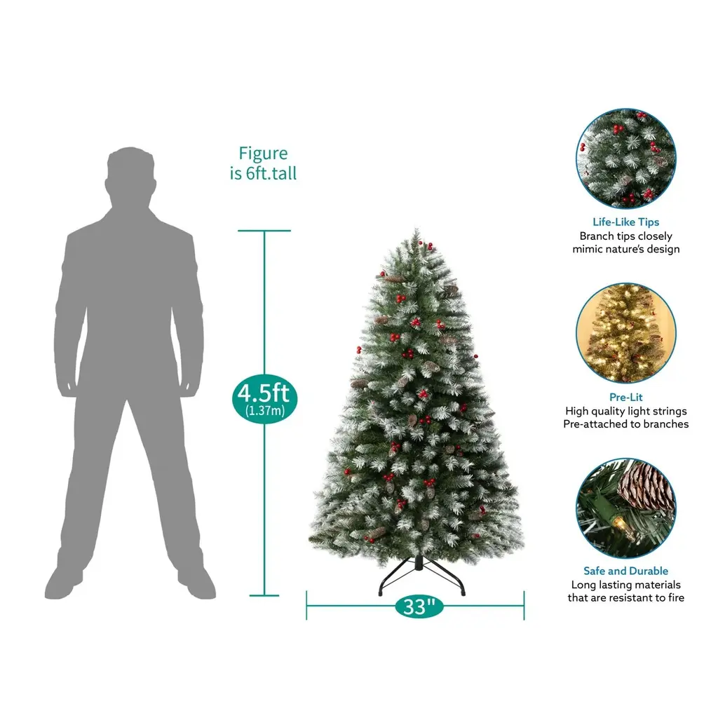 Vancouver Artificial Christmas Tree, Prelit Christmas Tree, Pre-Decorated Spruce Christmas Trees With Tips And Lights - 4.5 Foot