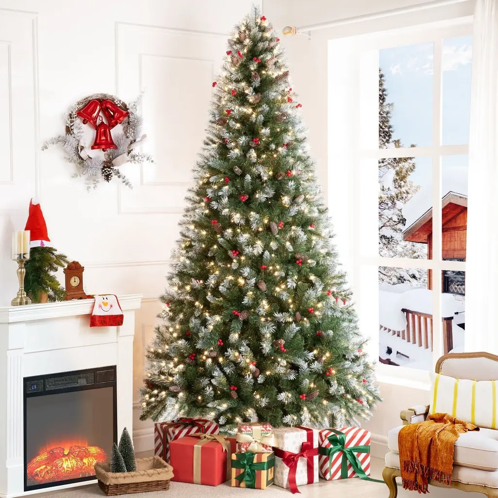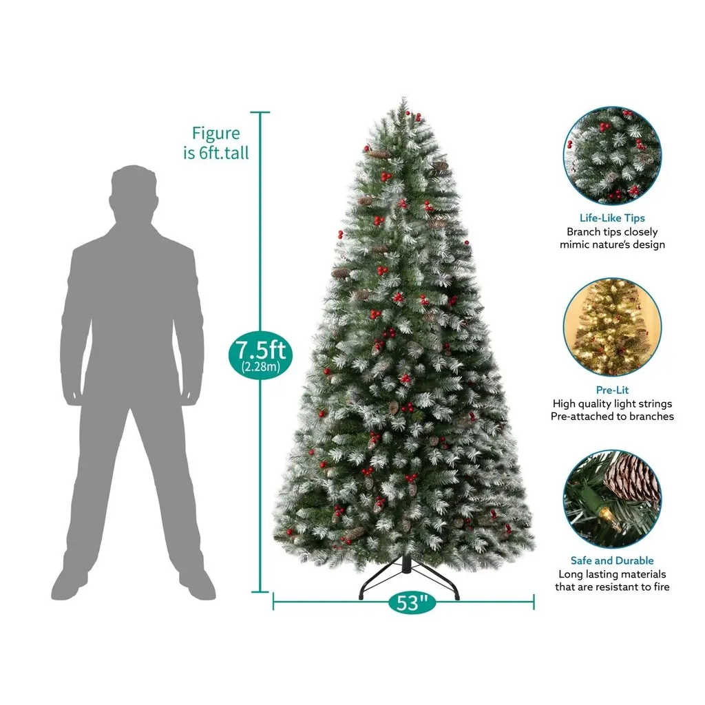 Vancouver Artificial Christmas Tree, Prelit Christmas Tree, Pre-Decorated Spruce Christmas Trees With Tips And Lights - 7.5 Foot