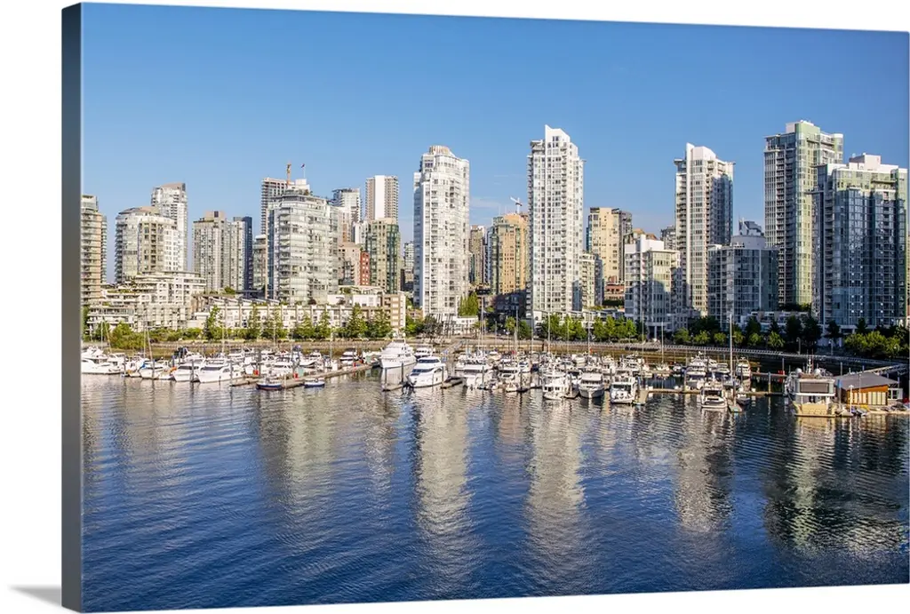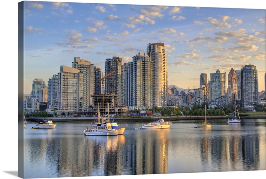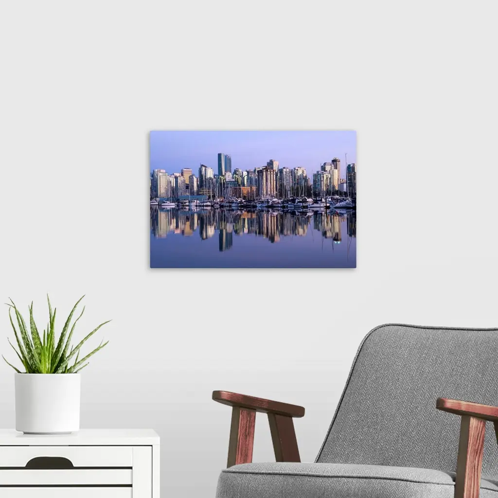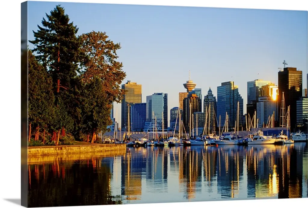 Vancouver, Bc, Canada Skyline And Harbor Reflecting At Sunset