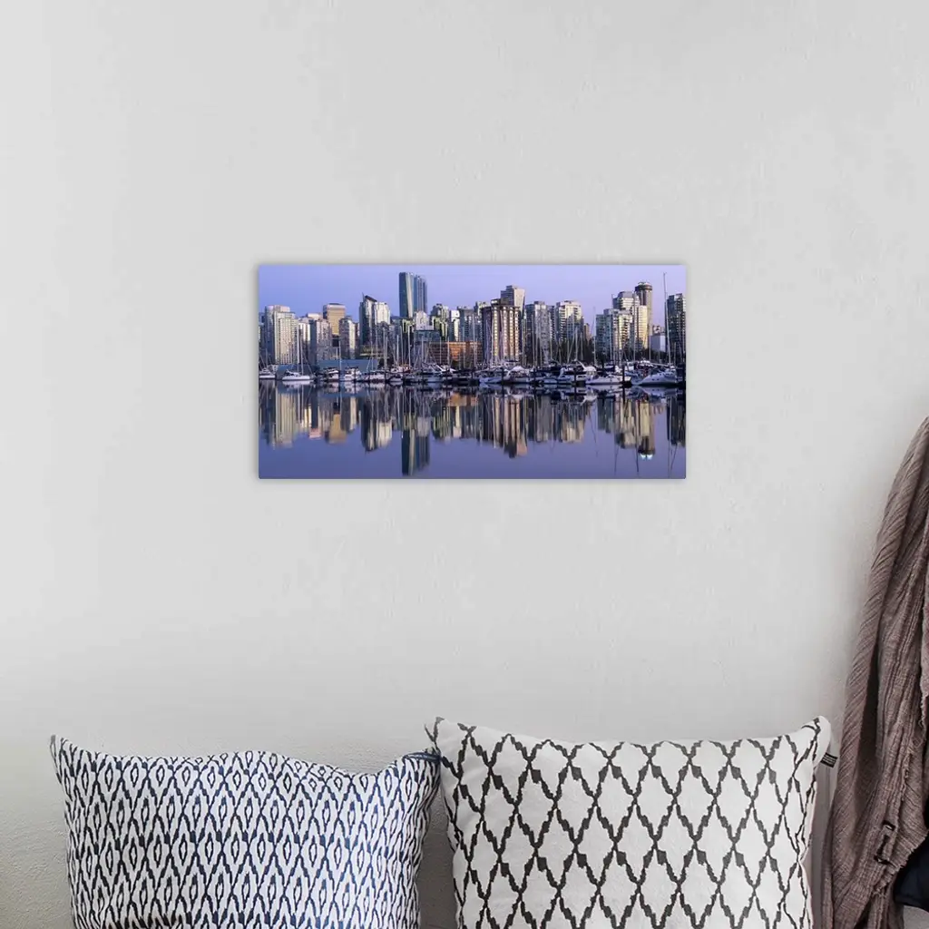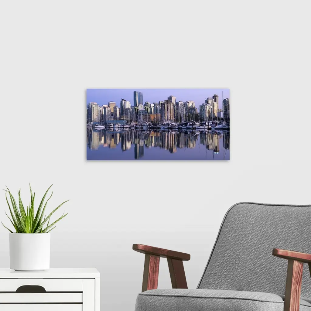 Vancouver, Bc, Canada Skyline And Harbor Reflecting At Sunset - Crop