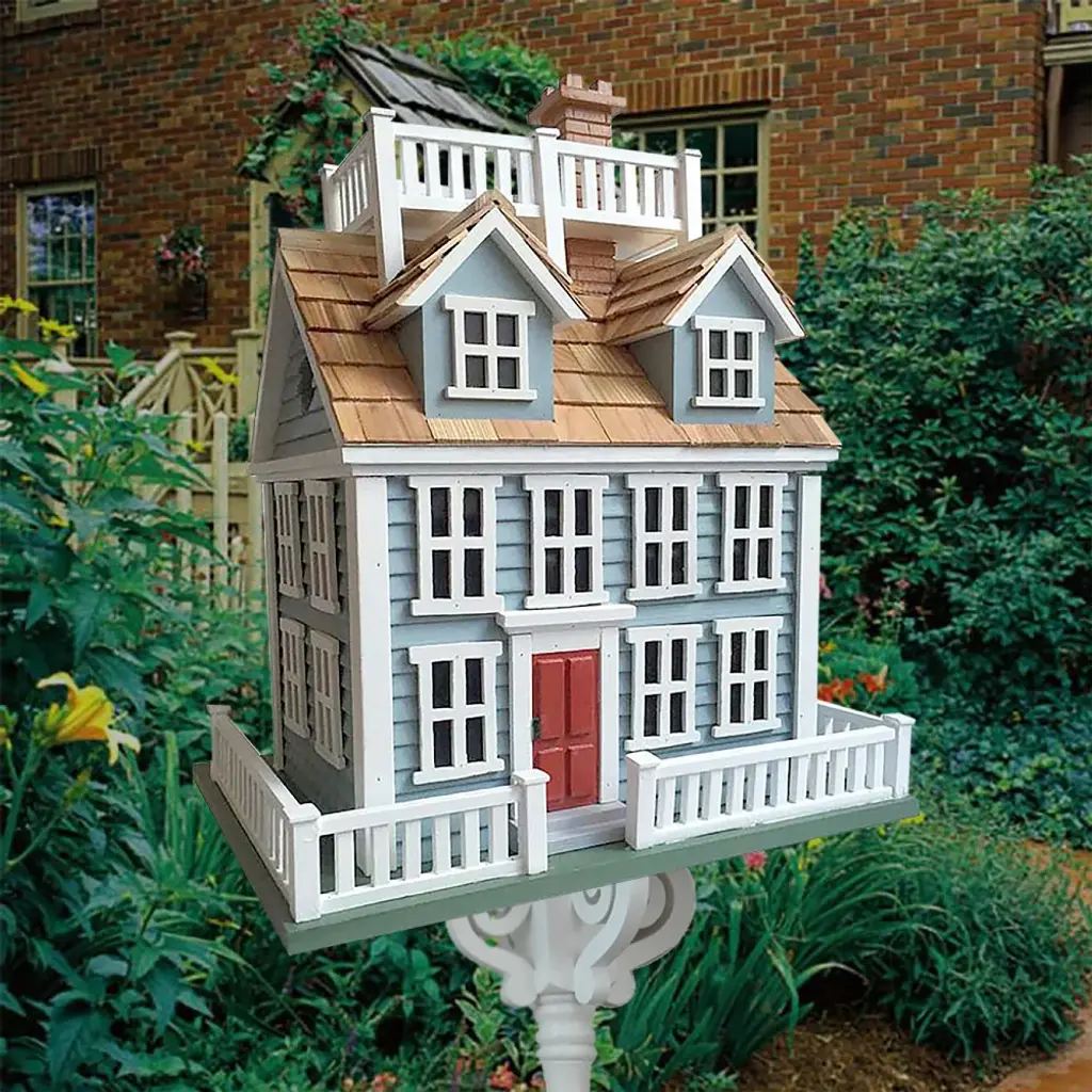 The Pinewood Birdhouse series features a variety of scaled-down versions of classic home architecture, landmarks, and pop culture designs. Each birdhouse is handcrafted using natural pine wood that is painted and adorned with additional characteristics. Birds will love their new dwellings that are constructed with the finest materials and with fine attention to detail. They are designed for small nesting birds such as wrens, finches, sparrows, warblers, and other small common nesting birds. Our decorative bird houses are fully functional and intended for outdoor use. Includes a 1.25-inch opening, ventilation, floor drainage, and an unpainted interior. The sloped roof protects the house from the elements, offering birds a safe place to call home in winter. The Green Lake House design can sit on a post or be hung from a tree with the pre-installed black wire. Birds will start enjoying this birdhouse immediately. No tools or assembly required. We have designed our bird houses to be functional for the birds and the owners. Easy access to a clean-out makes it easy to clean and keep your wild bird house looking great all year. Measures 8 in x 6.3 in x 7.4 in.
