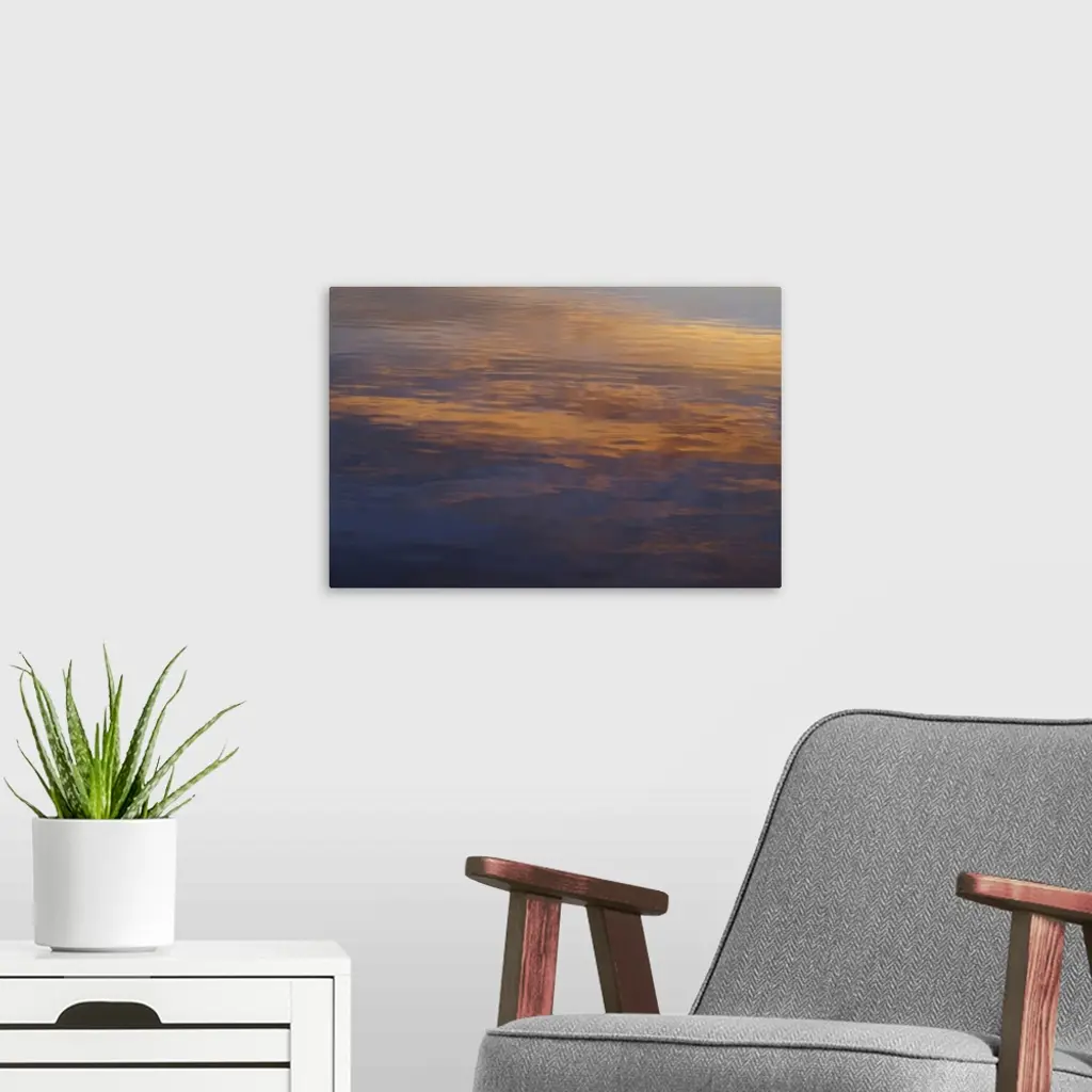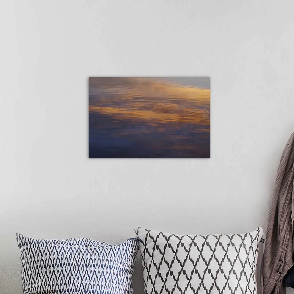 Clouds lit by the setting sun, look at their reflections in the water.