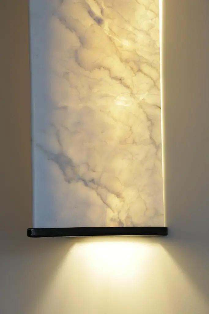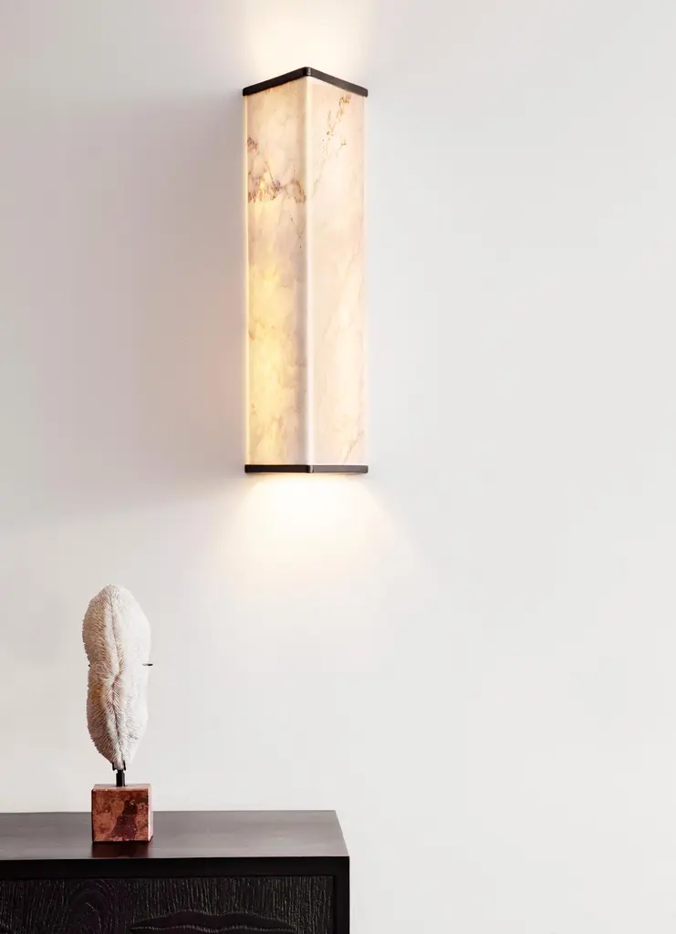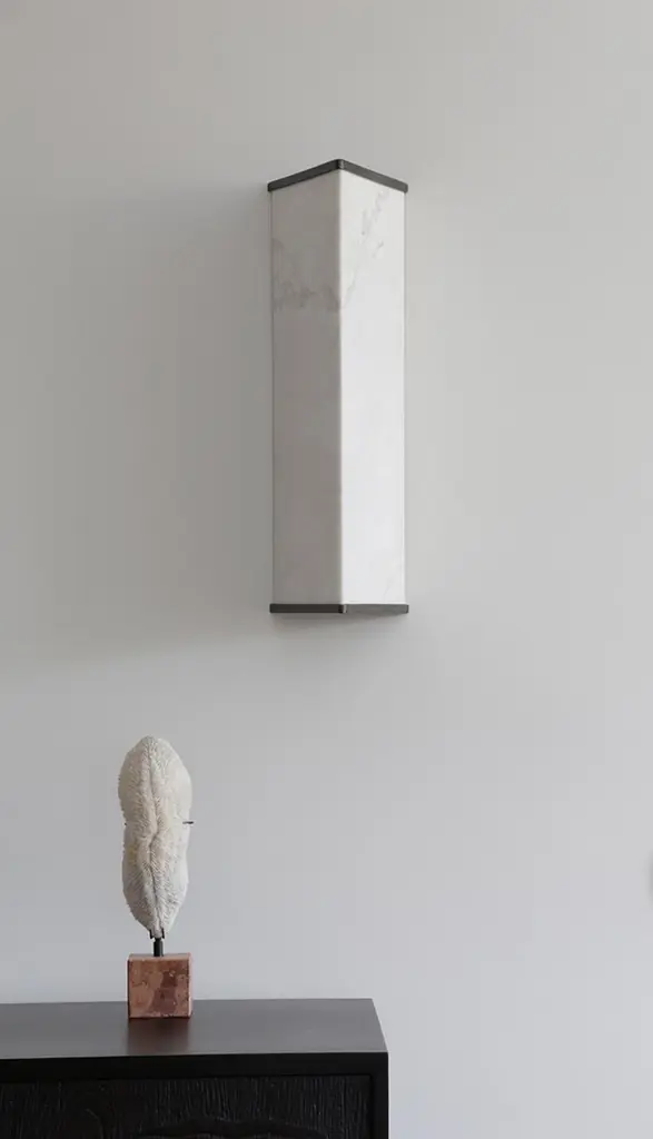 ‘Vanity’ is a marble & bronze wall light that epitomises boldness and contrast. In ‘Vanity’, the marble body becomes a vessel of time, suggesting stability and permanence, while light is the medium for a continuously shifting, living and aetherial presence.________________________________________What makes it unique:Its strong lines are softened by luminous matter, giving form to a sensual collectible object that functions both as a source of light and as an expressive decorative piece.Carved from a seamless block of marble, ‘Vanity’ reveals the inner life of stone. When illuminated, the surface exposes its crystallinity and natural veining, transforming marble from a rigid and opaque substance into a glowing rock of unexpected delicacy. The interplay between stone and light creates a dynamic dialogue—at once timeless and contemporary—where materiality itself becomes the ornament.________________________________________Visualizing it in your space:‘Vanity’ thrives on contrast and brings on harmony. A heavy and stern volume of marble becomes light and ethereal when illuminated, as the stone softens into translucency and radiance. Bronze details, hand-crafted with meticulous care, frame the marble in refined finishes—polished, matte, or aged. Whether glowing in a hallway, accenting an entrance space, framing a console or dining table or simply adding atmosphere to a private interior, Vanity shifts the mood of its surroundings with sculptural elegance.________________________________________Background & Identity:As with all works by on.entropy, ‘Vanity’ is rooted in craftsmanship. Every marble surface and bronze element is shaped through an in-depth dialogue between designers and master sculptors, a collaboration that ensures both material refinement and emotional resonance. ‘Vanity’ is not only an object of beauty but also a testament to on.entropy’s philosophy of cultivating a future for ancient art, ensuring that marble continues to evolve as a medium of design.________________________________________Why it’s worth the price:‘Vanity’ embodies a rare combination of cultural heritage, artisanal precision, and contemporary adaptability. The uniqueness of each marble piece guarantees individuality, while the refined hand-crafted bronze ensures longevity and elegance. Beyond its function as lighting, ‘Vanity’ is a statement of continuity: a rigid material metamorphosed into a sensual, luminous presence.‘Vanity’ is a marble wall light that embraces longevity, as it anchors fleeting light in timeless stone, turning illumination into a ritual of endurance and continuity.Part of the proceeds from Vanity also support the initiative A Future for the Past, extending the object’s impact beyond design to cultural preservation. In acquiring Vanity, one invests in more than light; one participates in the ongoing story of craftsmanship and heritage.________________________________________Technical Details:•Made from Greek Dionysos marble• Τemperature of light: 3000 K•Wired for LED strip, max 13,3W (dimmable)•Voltage: 220–240V (EU) or 110–120V (USA)For custom sizes, marble and finishes contact the seller•Made in Athens, Greece