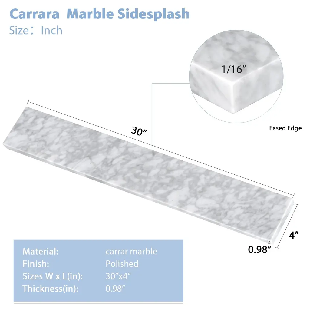Vanityfair 30 In. W X 4 In. H Natural Marble Vanity Top Backsplash In Carrara White - Glossy