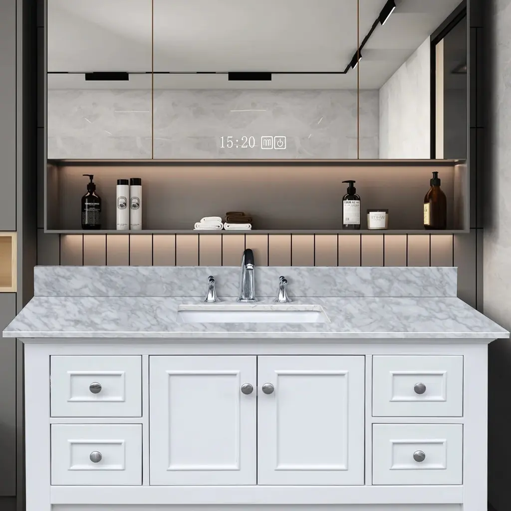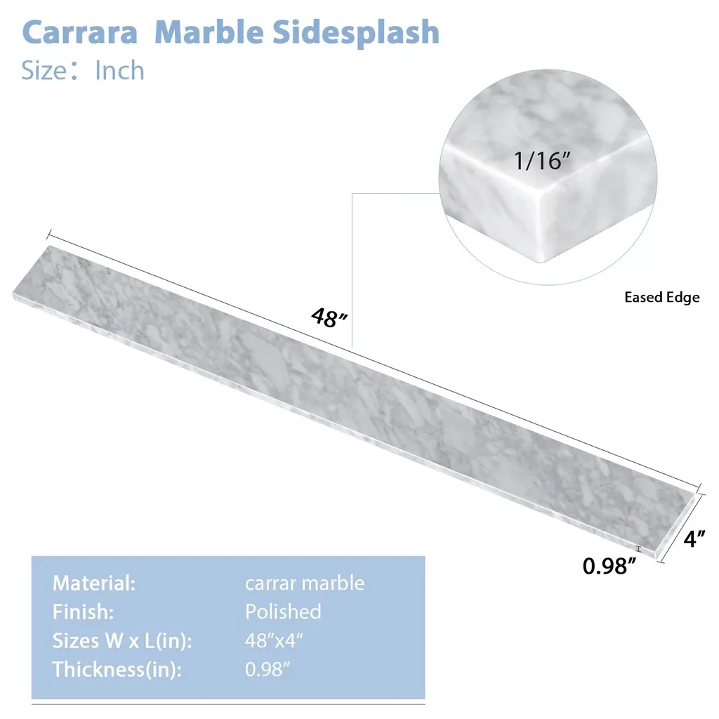 Vanityfair 48 In. W X 4 In. H Natural Marble Vanity Top Backsplash In Carrara White - Glossy