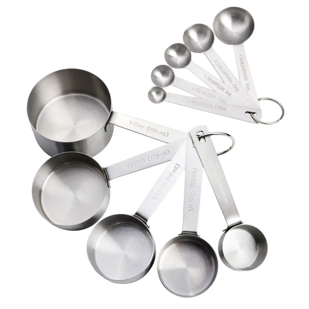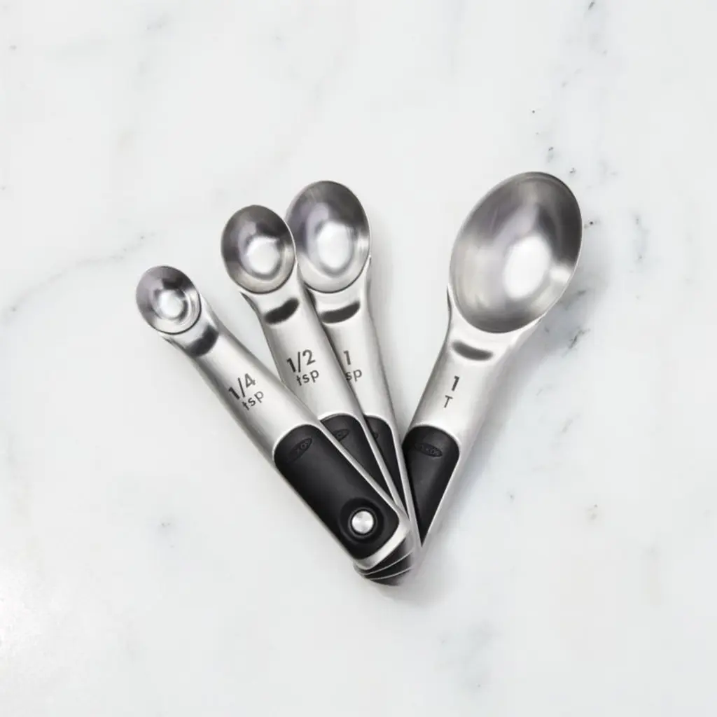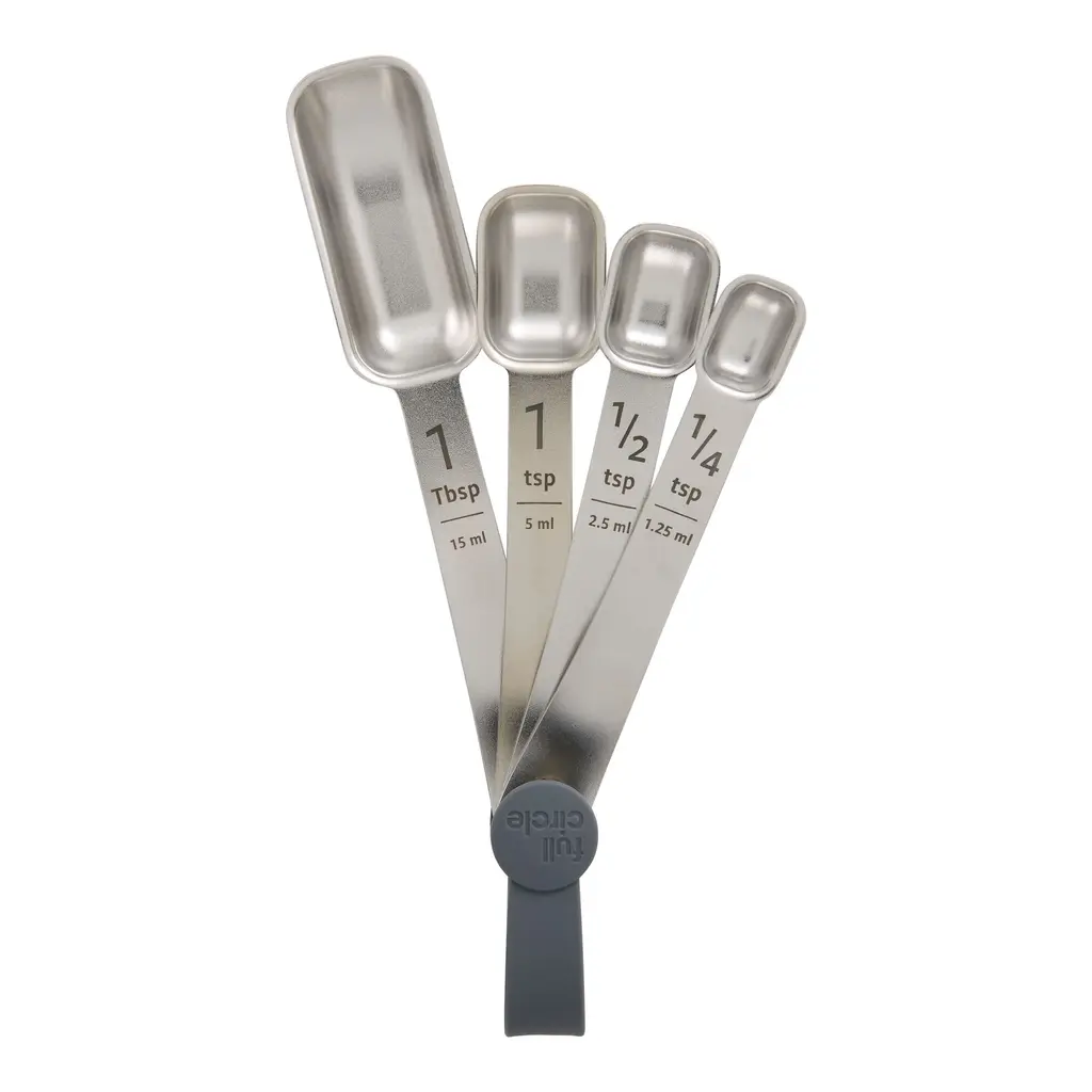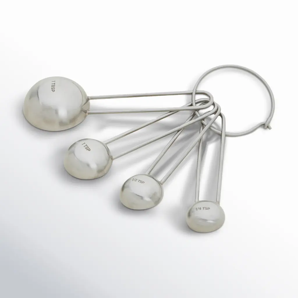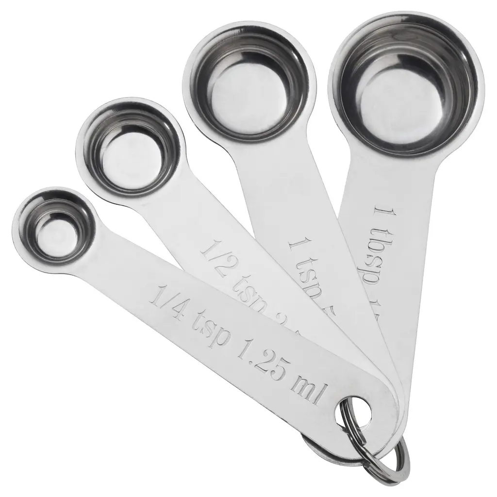VARDAGEN Measuring spoons, set of 4. Help you get the right amount of spices, flour or other flavorings when cooking or baking. Take up little storage space since the dimensions fit in each other. Feel free to hang them on a hook over the kitchen worktop so you always have them close at hand.