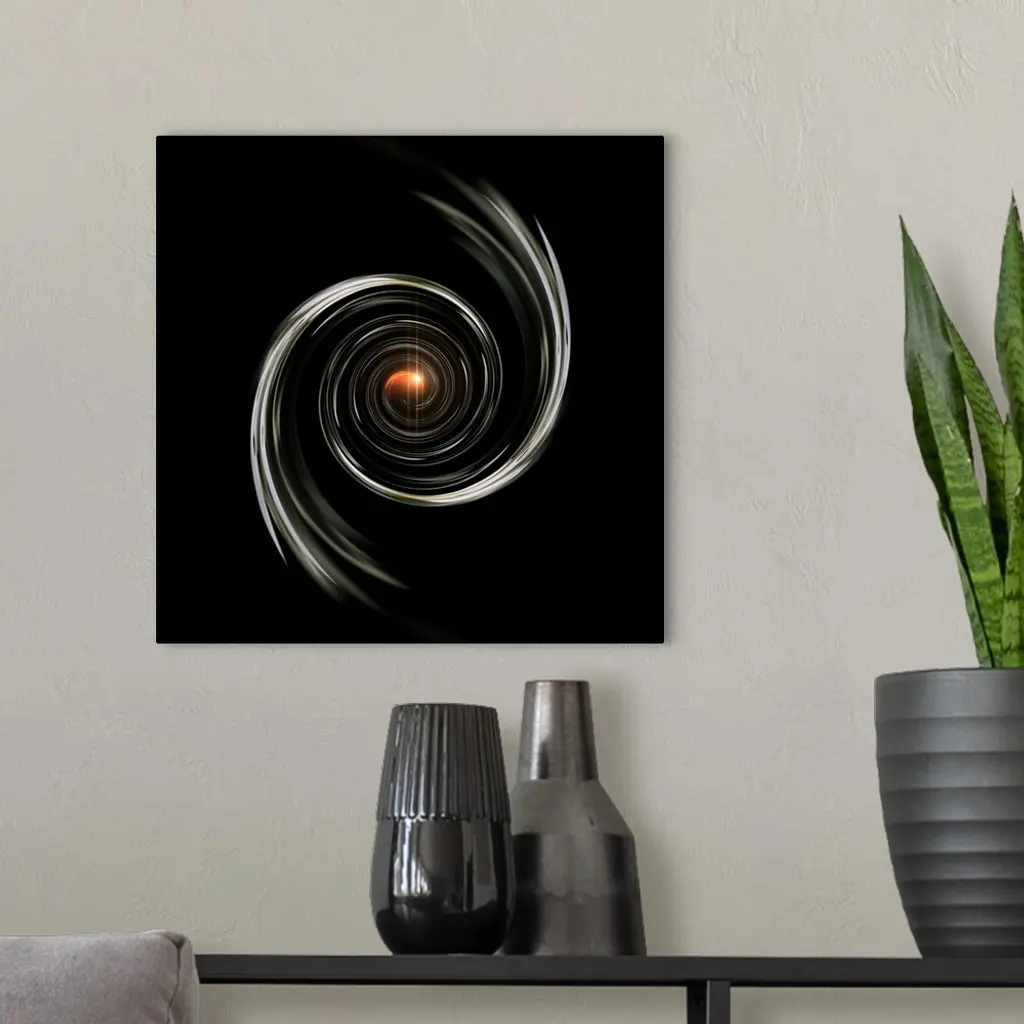 Gray lines winding into circles going in towards the center of the canvas creating depth on a black background.