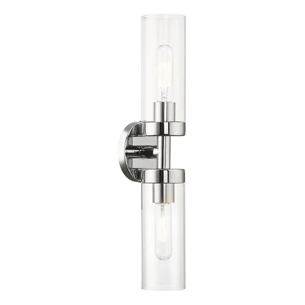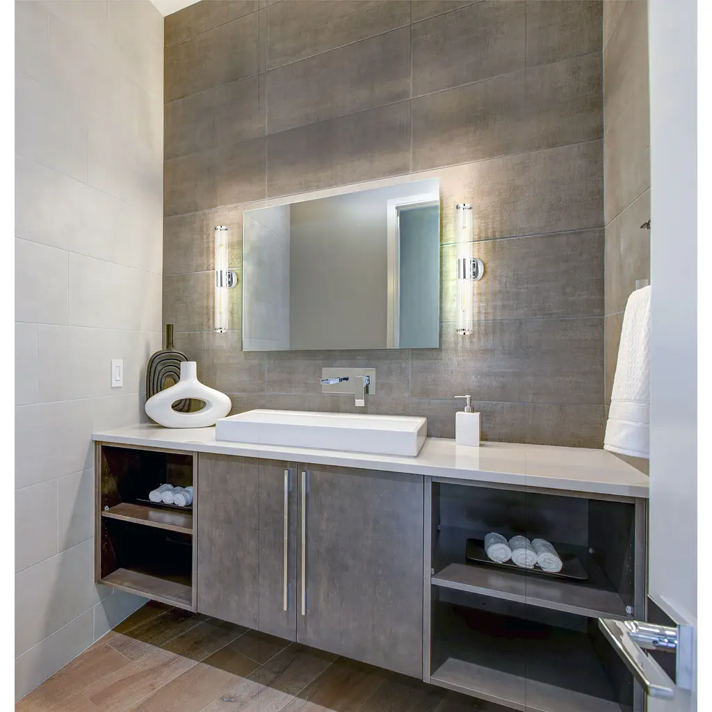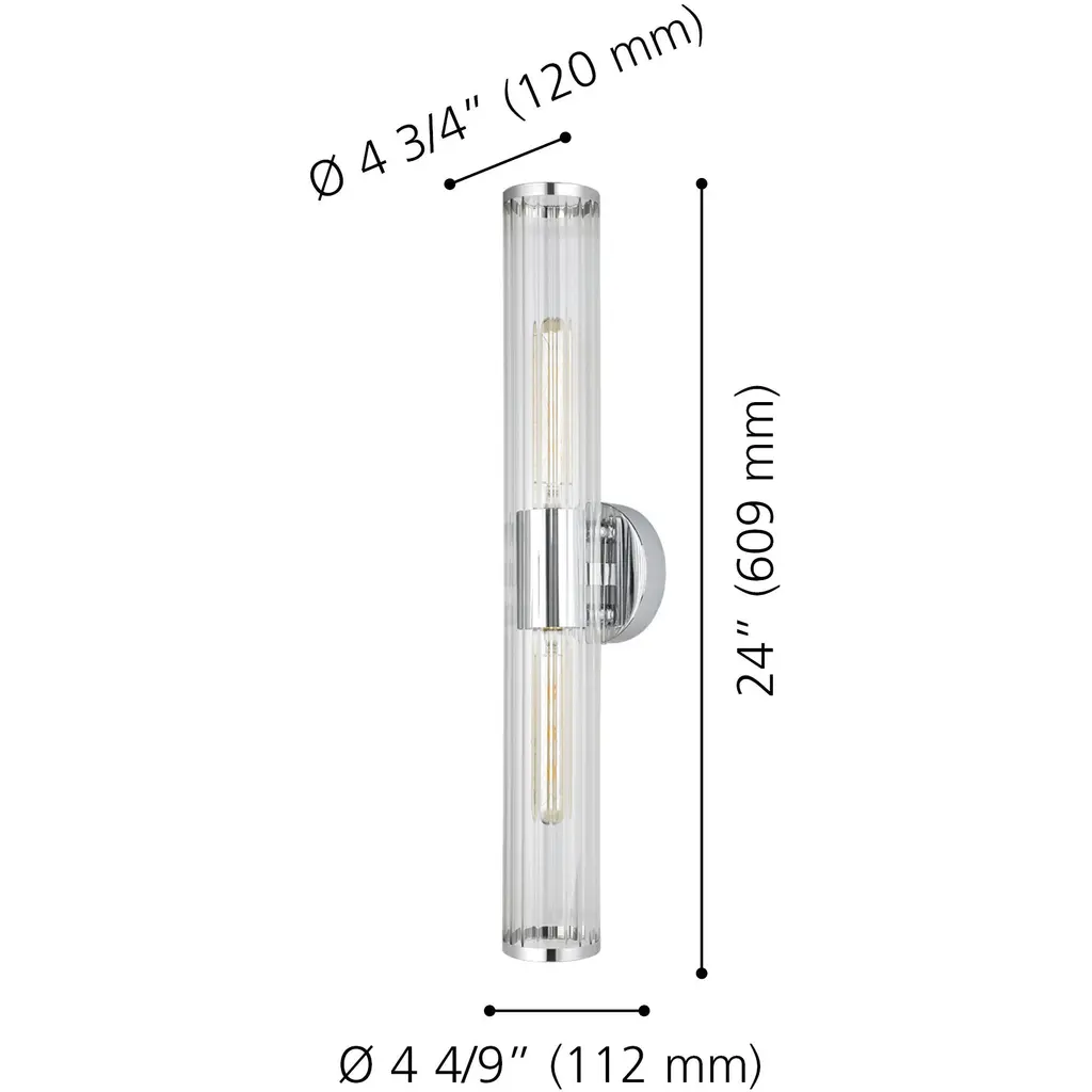 The Varvara vanity light is the perfect choice for those with exquisite taste. This cylindrical shaped wall light features a clear ribbed glass and a contemporary chrome finish. Customizable to your style, you can choose to install this fixture with or without the decorative chrome trims on the ends of the glass. This wall light can be installed both horizontally and vertically, making it not only the perfect bathroom light but also a great wall sconce option for any room of the home.