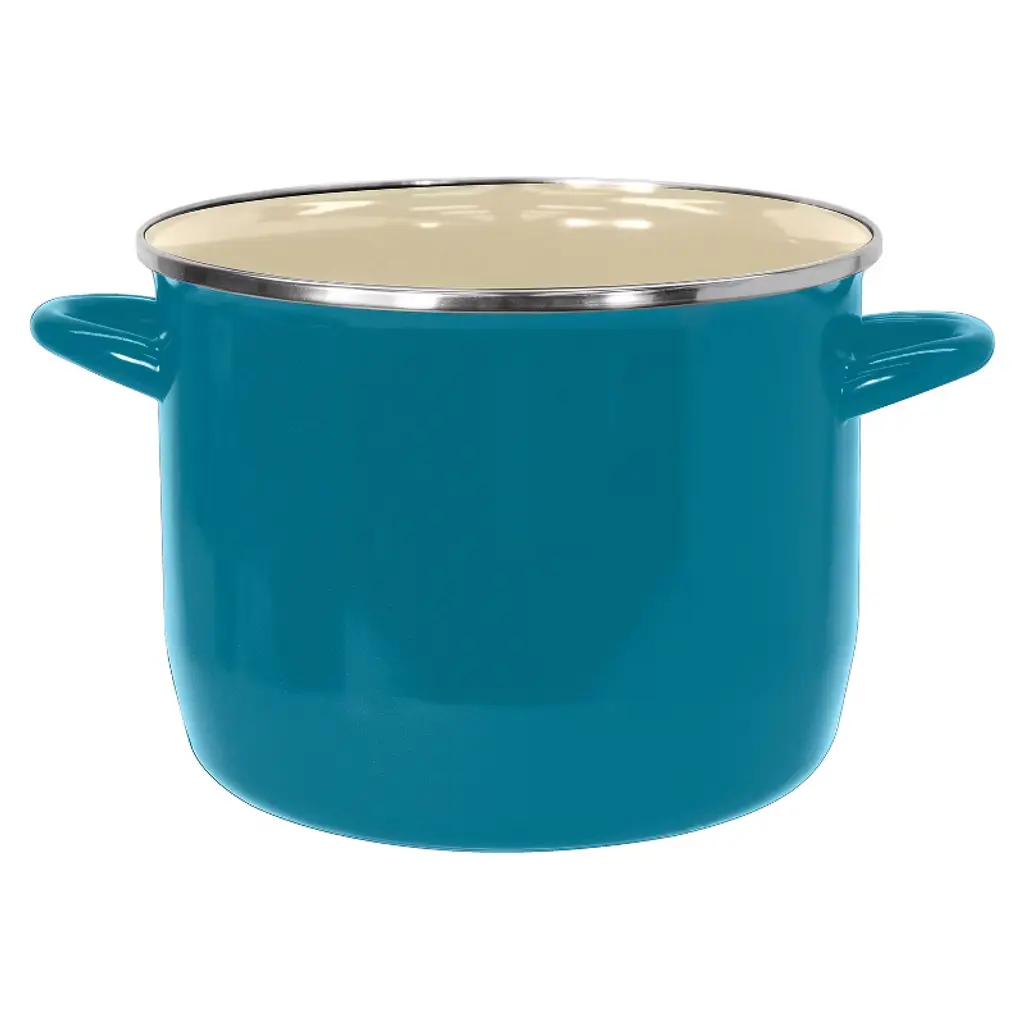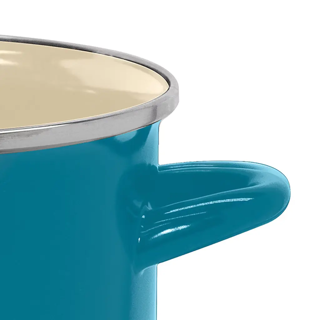 The Vasconia 8-Qt. Teal Stockpot is made with premium enamel on steel. This heavy-weight steel stockpot with a hard and glossy exterior is 7x stronger than traditional aluminum stockpots. An enameled interior makes cooking and cleanup a breeze. The 7-layer enamel exterior makes the cookware scratch-resistant and will maintain its shine. Enamel-on-steel handles complete the elevated look. The glass lid comes with a stainless steel handle. It's oven safe up to 480°F. This stockpot is truly a versatile piece that can be used to cook up just about anything, anywhere (grill, stovetop, or oven). The pretty exterior means you can bring it straight to the table for serving too.