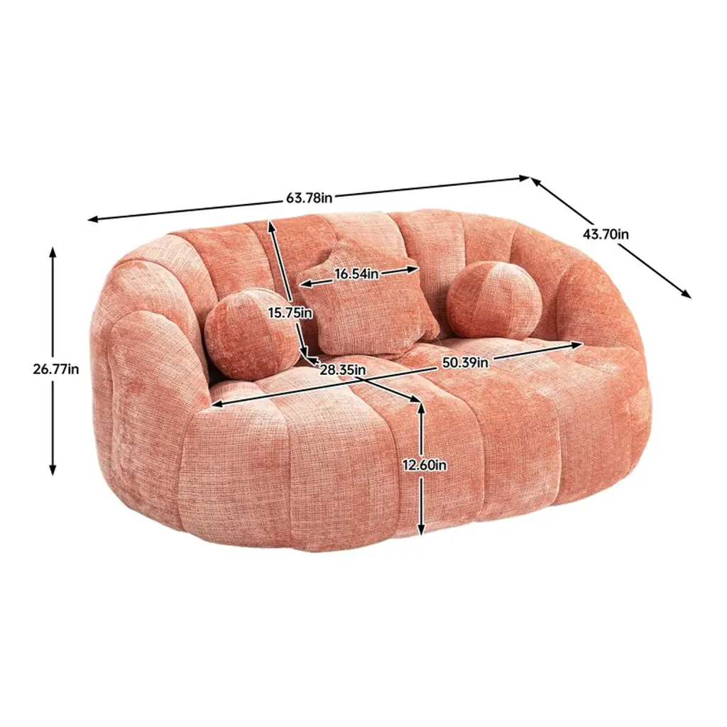 High Density Foam Filling This sofa is filled entirely with high quality, high density, high resilience memory foam.The sofa gives your back and hips reliable support, offering a comfortable sitting experience.Overstuffed chairs are extremely durable and retain their shape over extended periods of use. The two-seater sofa chair gives you ultimate relaxation while loving your back and conforming to your body. Expanded Comfort This sofa are adult-sized, suitable for sitting, nap and hanging out. It is soft and soft to the touch.Our spacious recliner can be used as a bed, recliner or two-seater sofa.Toddlers and children can share with friends or siblings. Main Color:Pink Main Material:Chenille Filler:Foam Product Dimensions Assembled Length (in.):63.78 Assembled Width (in.):43.70 Assembled Height (in.):26.77 Product Weight (lbs.):75.24 Package Size Length (in.):28.74 Width (in.):22.44 Height (in.):11.42 Weight (lbs.):81.77