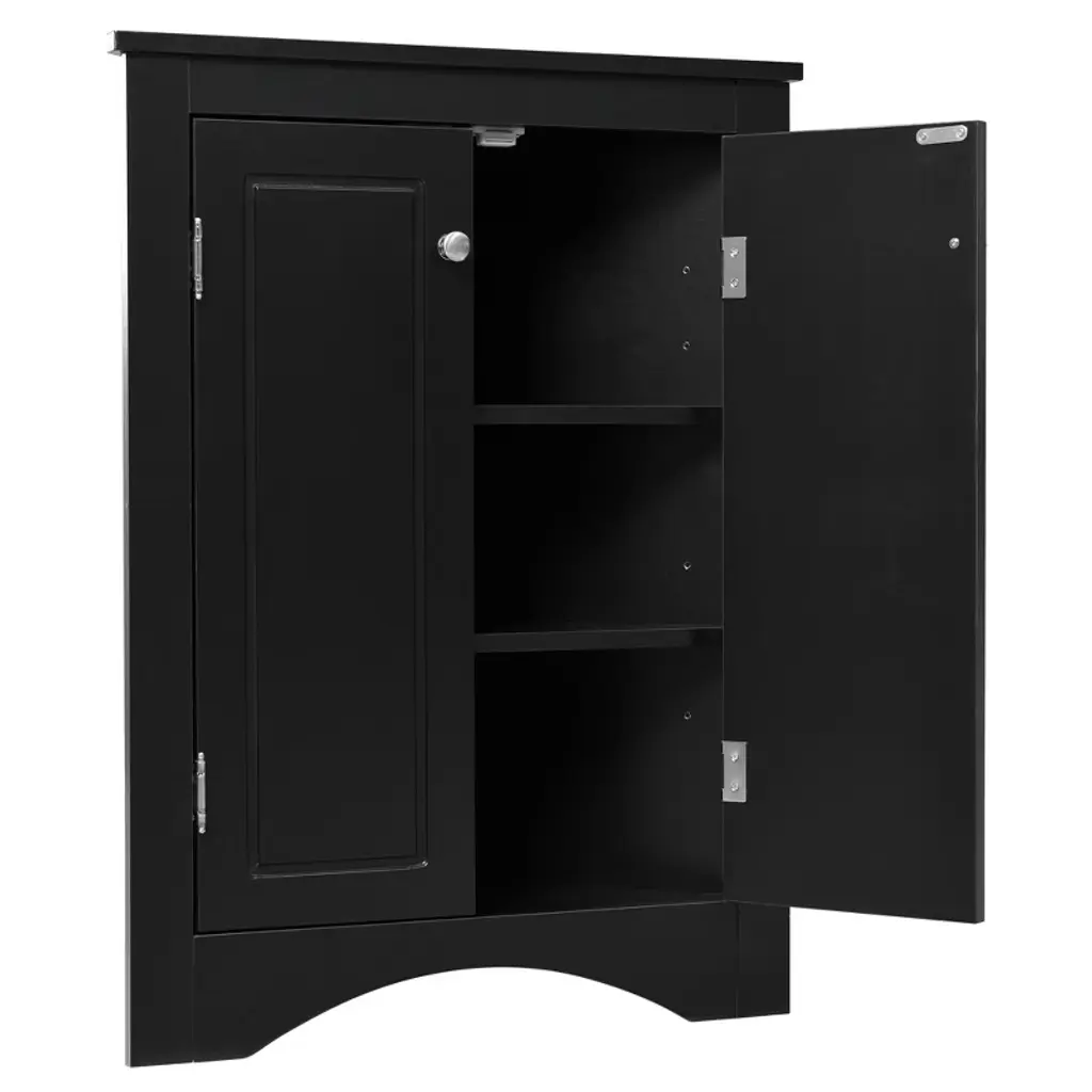 Vatros Triangle Bathroom Storage Cabinet With Adjustable Shelves Freestanding Floor Cabinet, Black