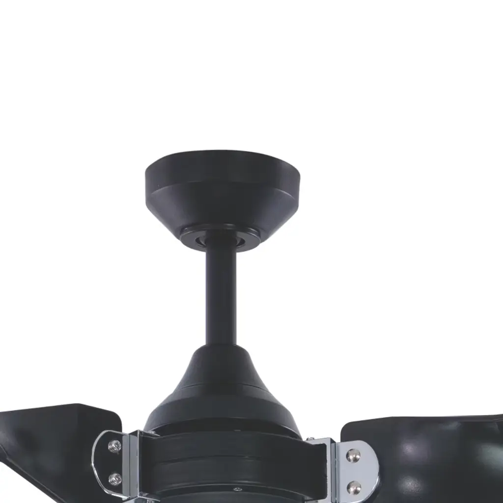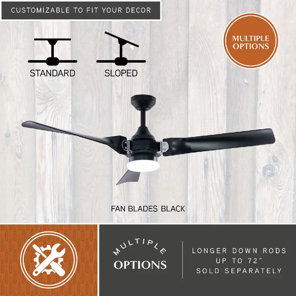 Industrial and contemporary lines blend to create visual excitement in the Austin fan. The sleek black and chrome finish combine to add a modern touch. The three simple blades gently curve to create perfect air flow to any interior or exterior living space. An integrated LED light source provides energy saving, no bulb changing convenience, low maintenance and long-lasting performance. Press dimmer button on the included remote to change the color temperature from 2700K, 3000K, 3500K, 4000K, and 5000K. This indoor or outdoor ceiling fan is ideal for your covered porch, family room, or any other area of your home.