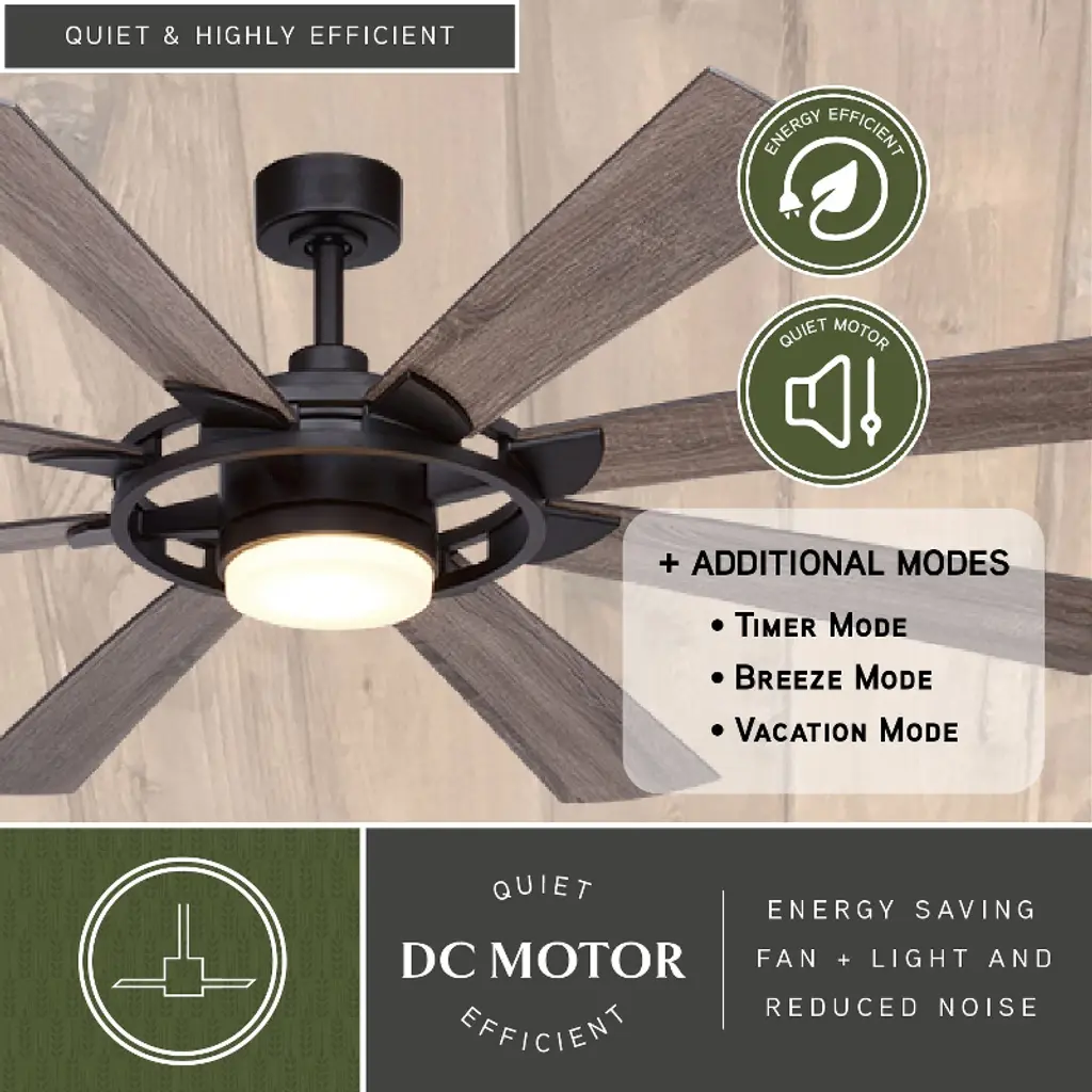 Vaxcel Burlington 68-in Farmhouse Windmill Indoor Outdoor Ceiling Fan With Led Light Kit And Remote, New Bronze