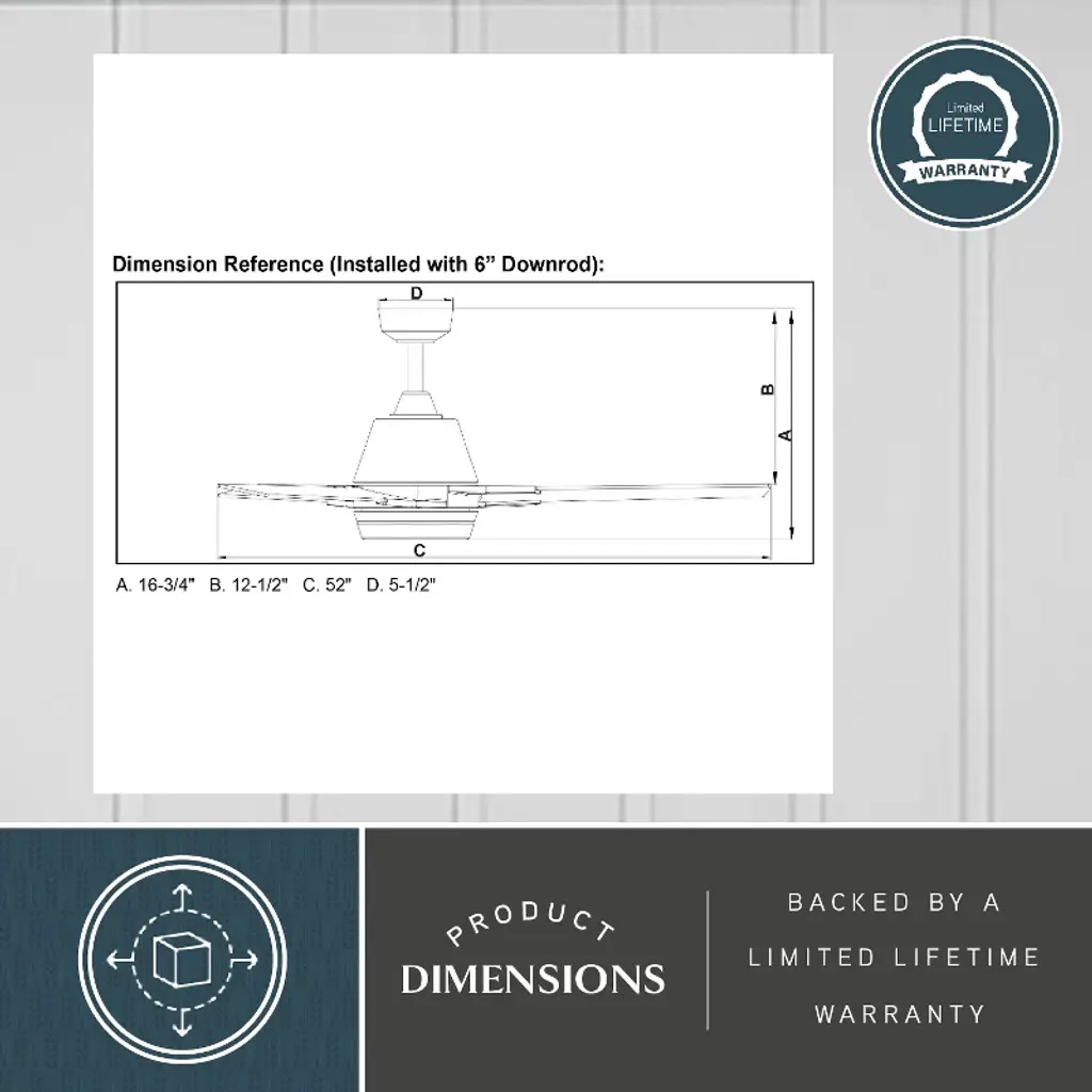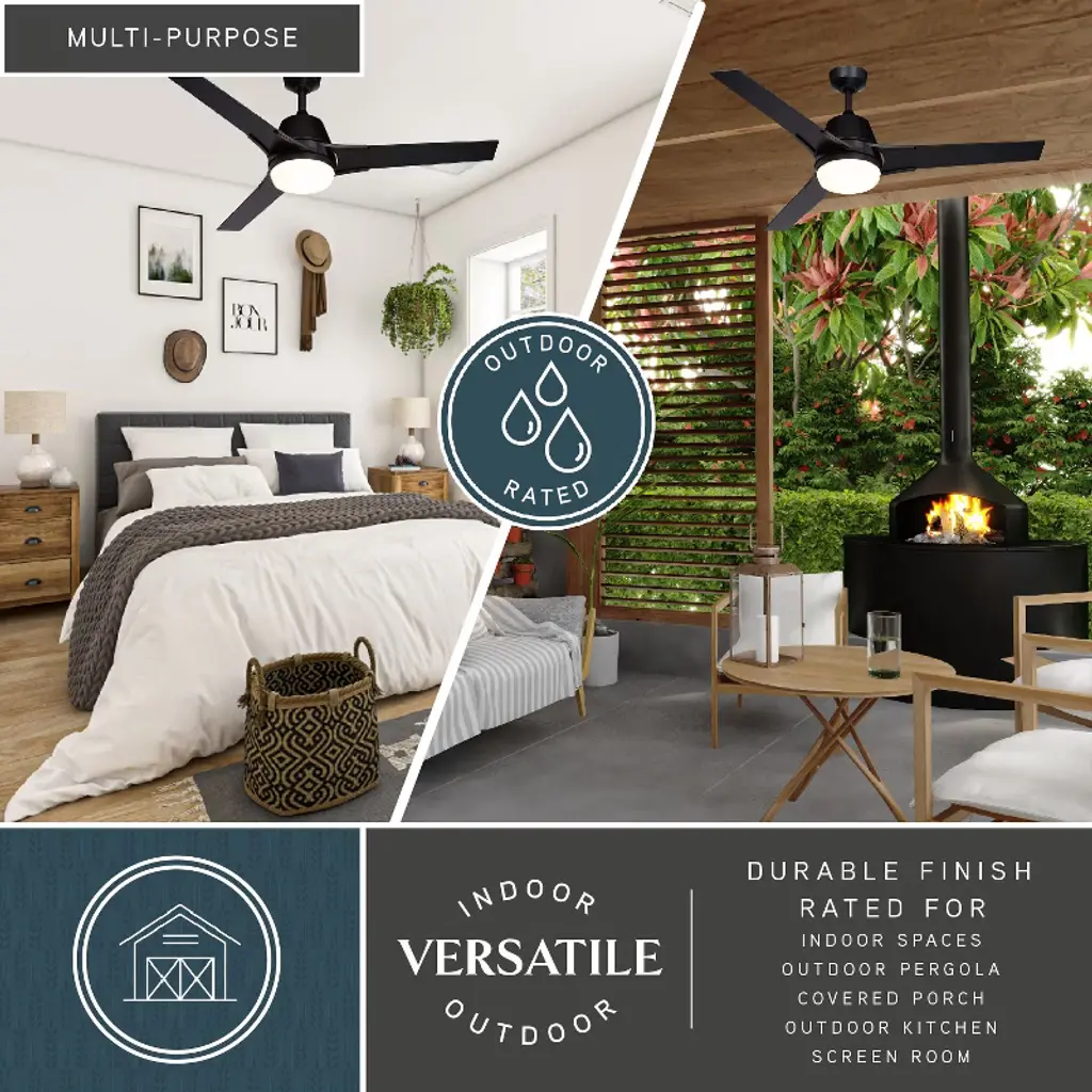 Vaxcel Crescent 52-in. W Black 3-blade Propeller Indoor Or Outdoor Ceiling Fan With Light Kit And Remote