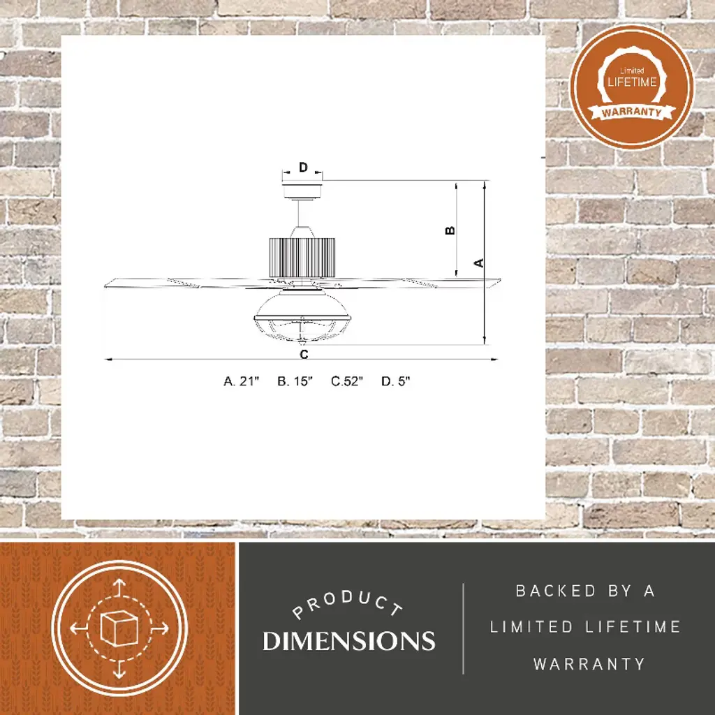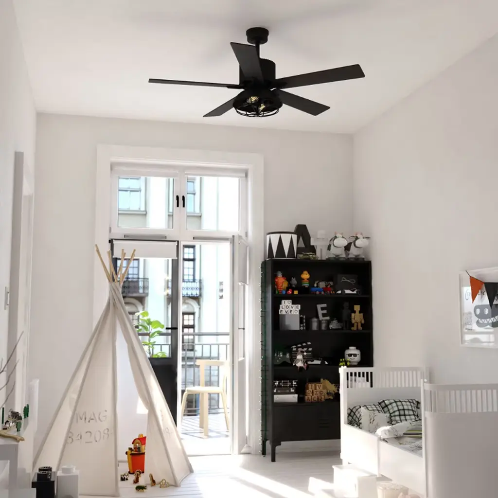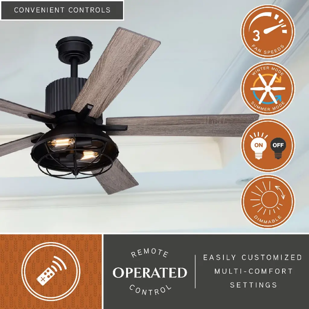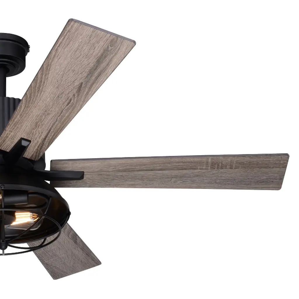 Vaxcel Elkhart 52-in. Black Industrial Indoor Ceiling Fan With Led Cage Light Kit And Remote