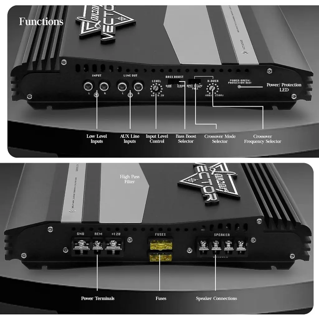 The VCT2020 2-Channel Car Stereo Amplifier is the perfect solution for enhancing your car's audio system. Delivering 200W peak power, this amplifier provides rich, dynamic sound that will bring your music to life. Its compact design makes it easy to install in most vehicles, while the adjustable gain control lets you fine-tune the audio output to suit your preferences. Built-in protection features ensure safe operation, preventing overheating or short circuits. With a sleek black finish, this amplifier fits seamlessly into your car’s interior and pairs well with most stereo systems for an enhanced listening experience on the go.