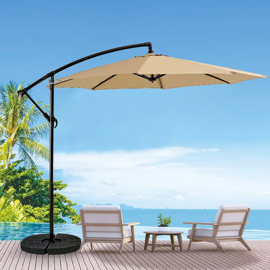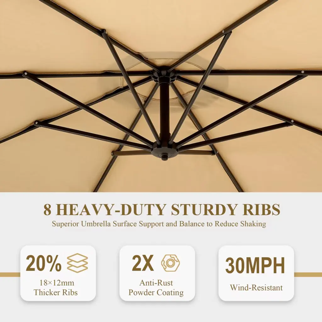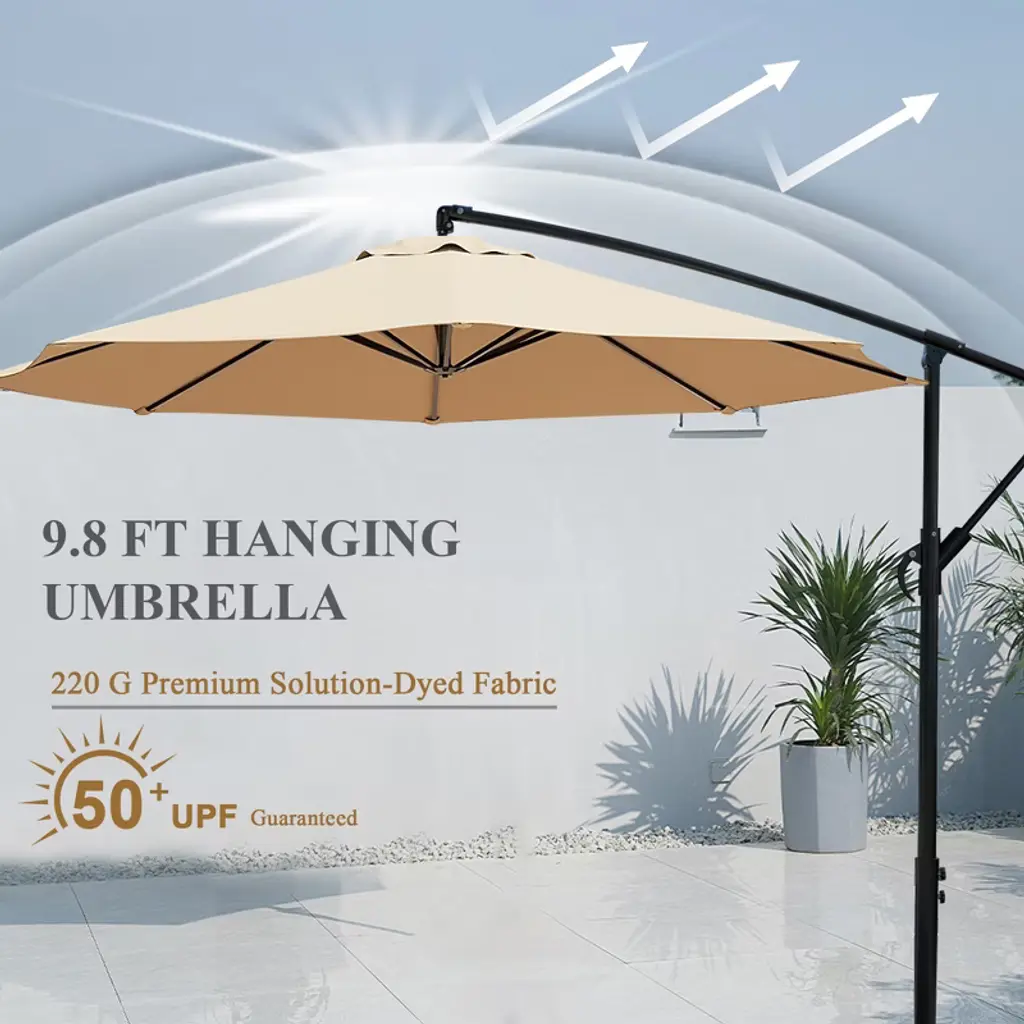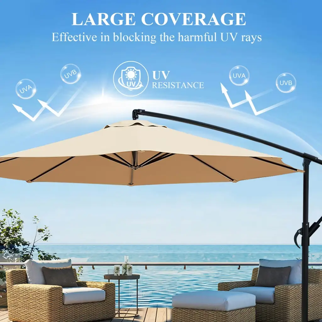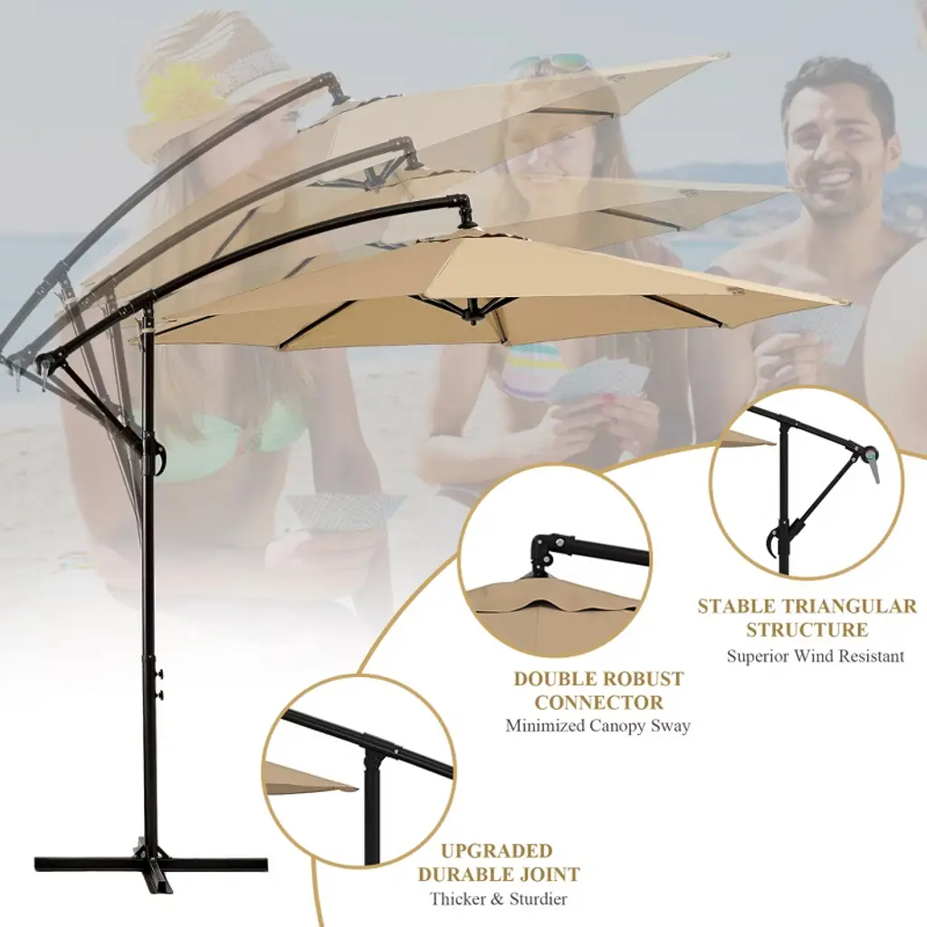 Vecelo 10ft Offset Hanging Patio Umbrella With Uv Protection Waterproof For Outdoor/garden/lawn, 8 Sturdy Ribs, Handy Crank&cross Base, Tan