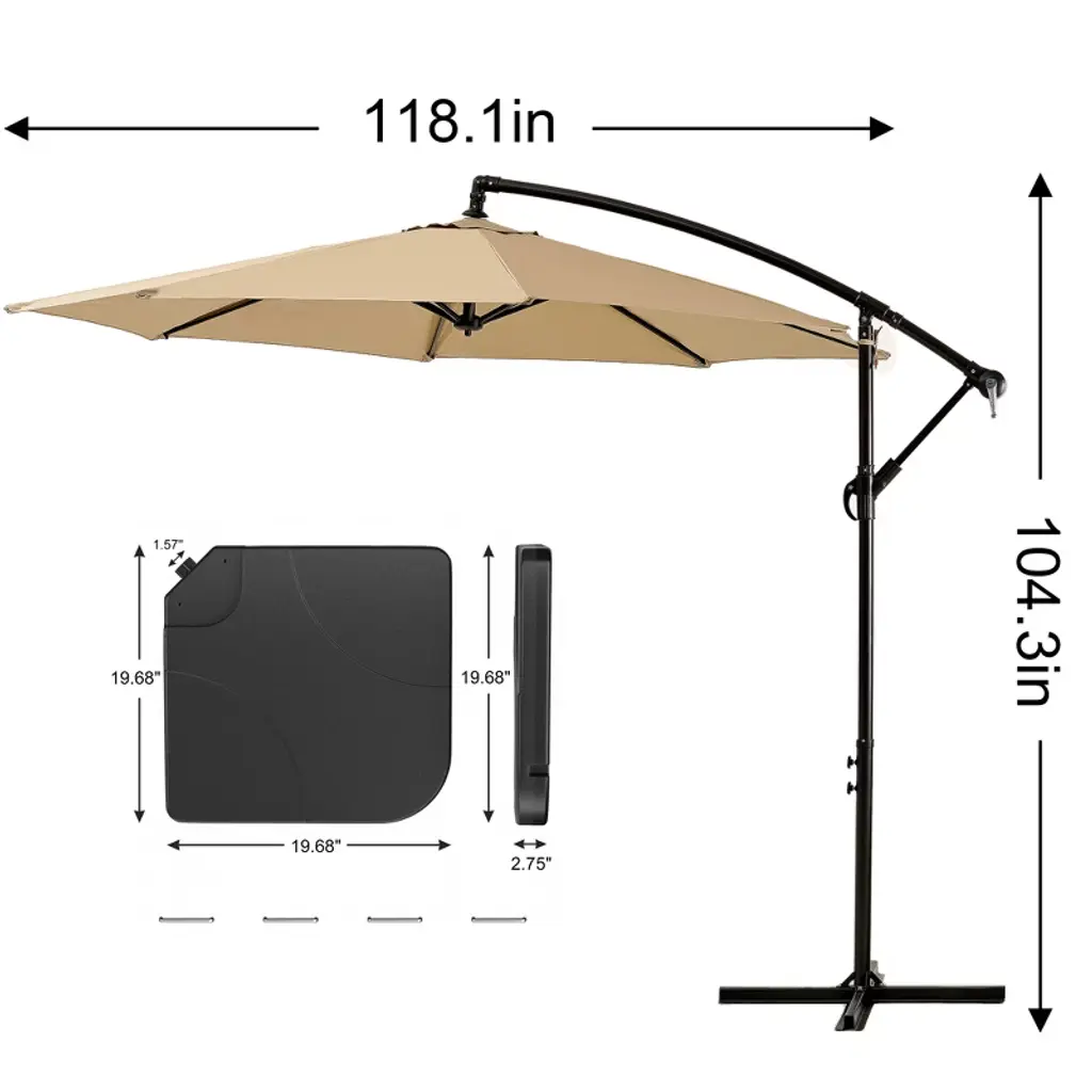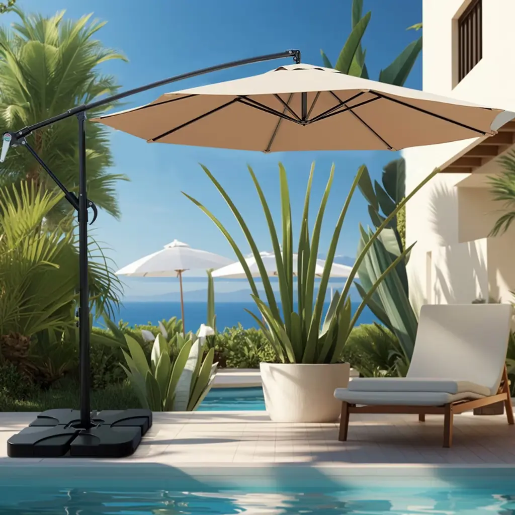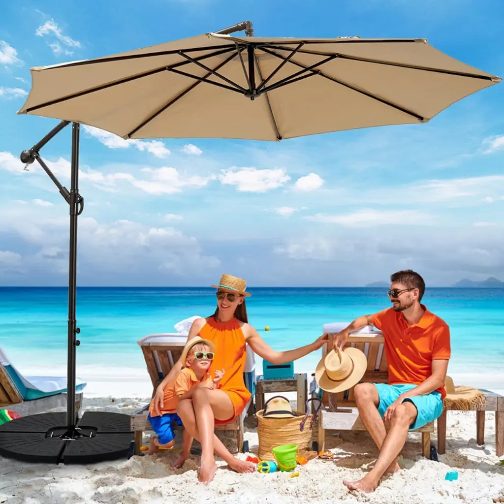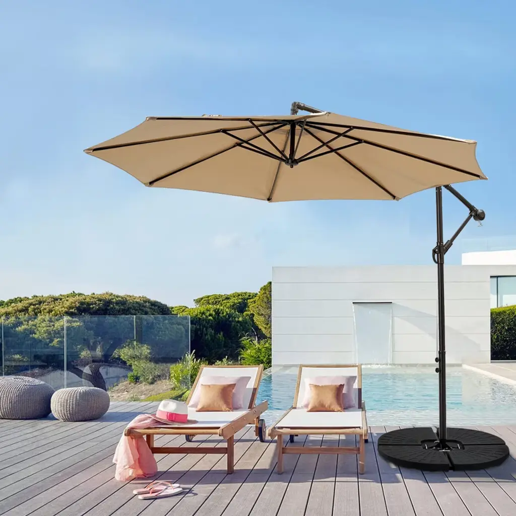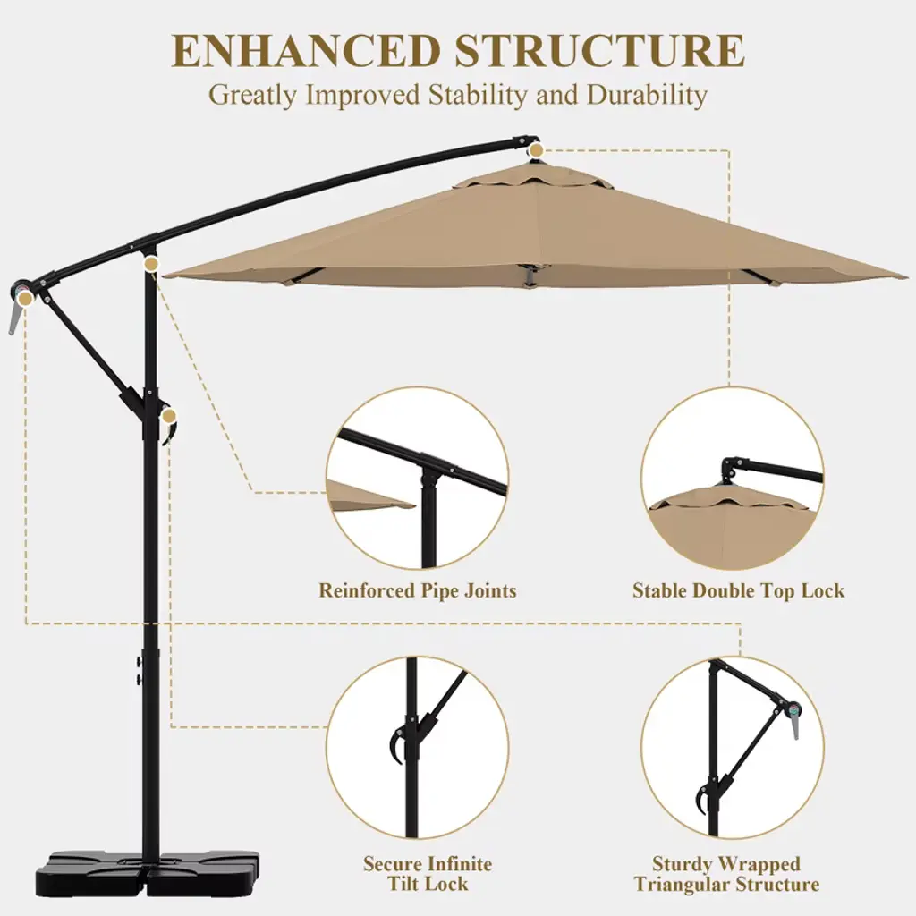Vecelo 10ft Offset Hanging Patio Umbrella With Uv Protection Waterproof For Outdoor/garden/lawn, 8 Sturdy Ribs, Handy Crank&cross Base, Tan