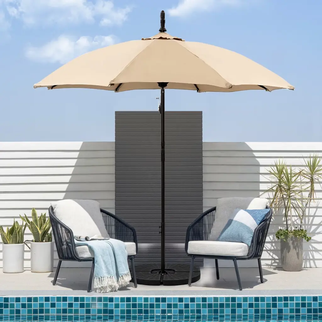 This outdoor patio umbrella is 10 feet in diameter and is ideal for markets, gardens, decks, backyards, poolsides and patio tables. VECELO Patio Umbrella is suitable for outdoor parties, weddings and gatherings. This deck umbrella is made of waterproof, fade- and sun-resistant polyester fabric that is extremely durable. Made of sturdy iron with a powder-coated iron pole that resists oxidation and scratching for added durability, this patio umbrella comes with 8 sturdy ribs to ensure solid support and stability for the canopy in all weather conditions. Vents at the top ensure air circulation for improved comfort. This garden umbrella features a convenient crank system for easy lifting, opening and closing. The hand crank lift and easy tilt system allows you to easily adjust the angle of shade to ensure effective sun protection at all angles, providing area protection all day long.