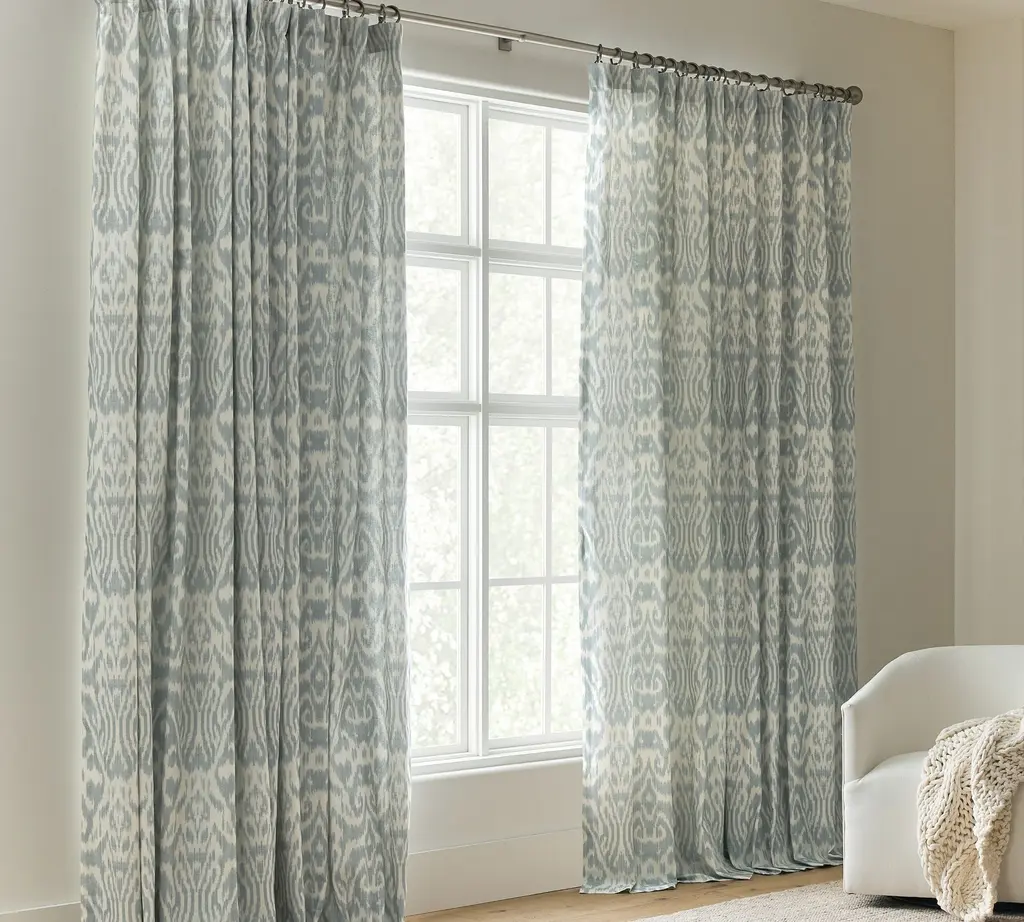 Traditional ikat designs inspired the bold pattern and rich color of our Vega curtains. Wake up windows with the distinctive, light-filtering style of this timeless motif.