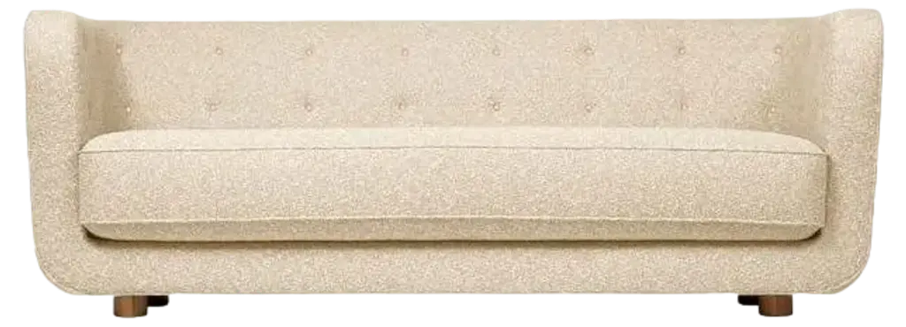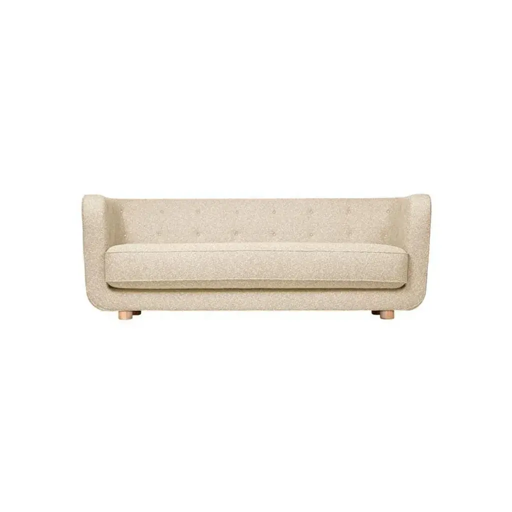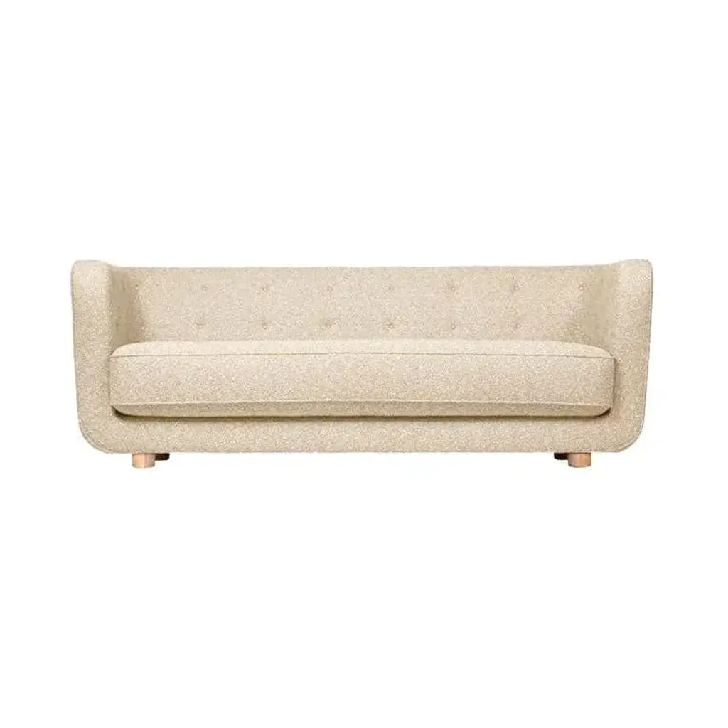 Vegeta buttons and natural oak signatur model vilhelm sofa by lassen dimensions: w 217 x d 88 x h 80 cm materials: textile, oak. Vilhelm is a beautiful padded three-seater sofa designed by flemming lassen in 1935. A sofa must be able to function in several ways. It should invite calm and contemplation. Create a private space you can hide in and at the same time invite to life and play. It must be able to withstand sitting on the backrest or on the armrests and then it must be able to stand in the middle of the room if you want to. In addition to being aesthetically beautiful and harmonious, the design makes absolute sense in relation to these parameters. By lassen is a danish design brand focused on iconic designs created by mogens and flemming lassen, founded by lassens’ relatives in 2008.